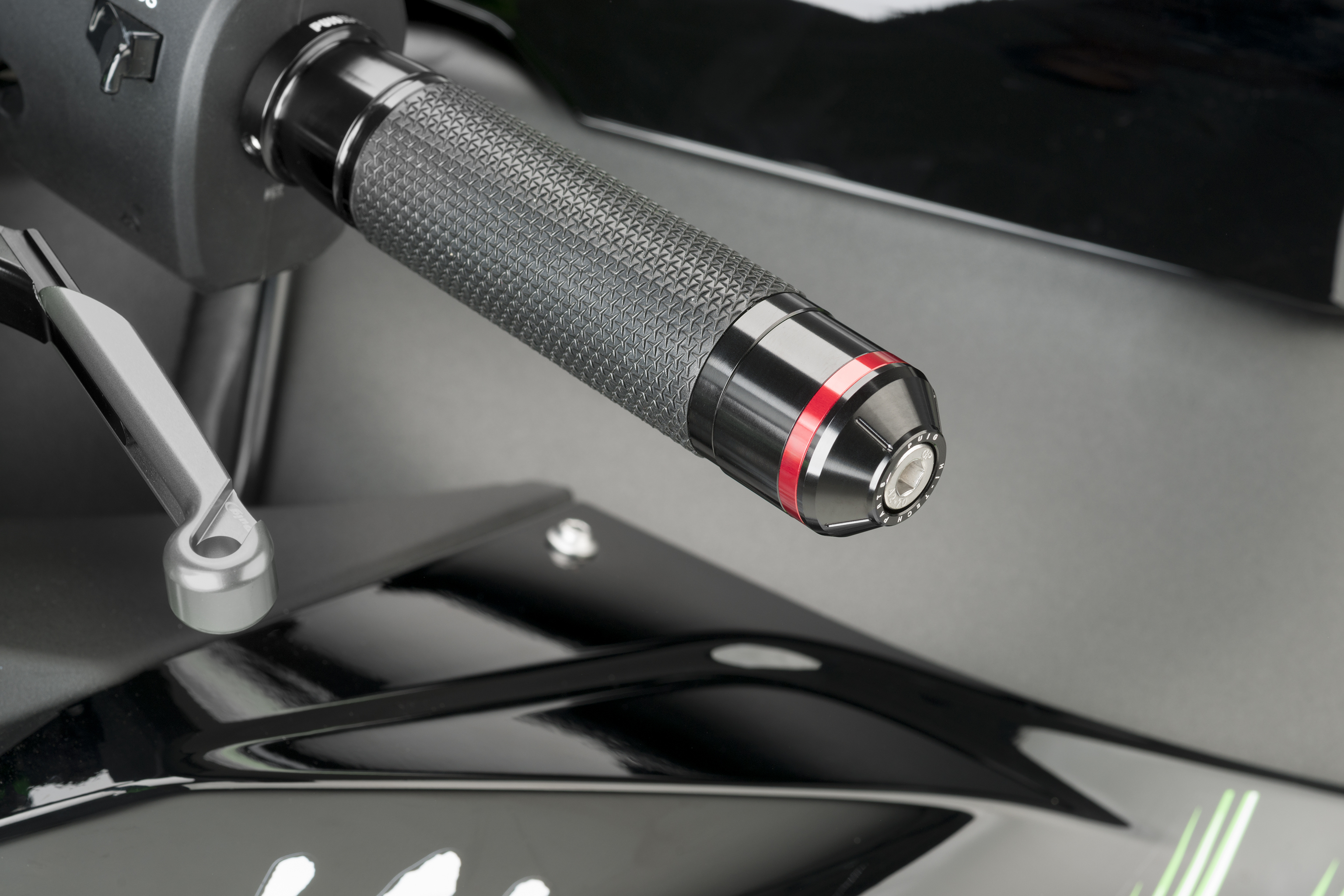 The piece is machined from billet aluminium (only 58g in weight and it measures 30mm), includes the particularity of having a rim embedded in the ends that will give a touch of color to the counterweight with a black finish. Regarding the hoops, PUIG offers a kit of 10 rings total (2 per color) to customize the motorcycle to your liking and includes the colors: black, blue, red, silver and gold. In case you want the green color, this is only used for reference Ref.8498N (Kawasaki and universal). It should be noted that the counterweights are offered in pairs. In the section of spare parts, PUIG also offers the possibility of acquiring the hoops of the counterweights.