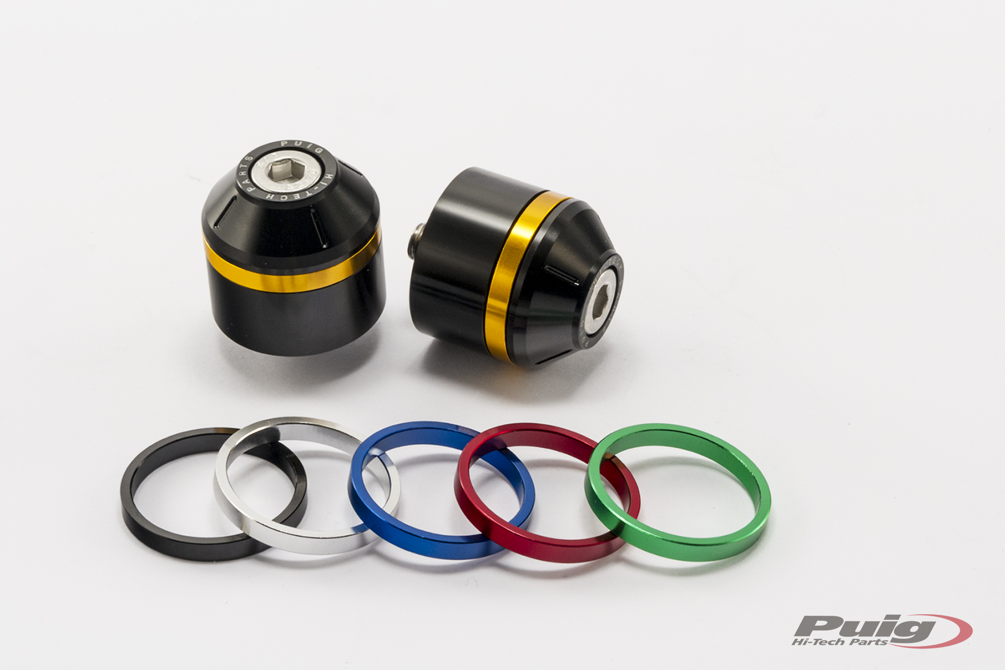 The piece is machined from billet aluminium (only 58g in weight and it measures 30mm), includes the particularity of having a rim embedded in the ends that will give a touch of color to the counterweight with a black finish. Regarding the hoops, PUIG offers a kit of 10 rings total (2 per color) to customize the motorcycle to your liking and includes the colors: black, blue, red, silver and gold. In case you want the green color, this is only used for reference Ref.8498N (Kawasaki and universal). It should be noted that the counterweights are offered in pairs. In the section of spare parts, PUIG also offers the possibility of acquiring the hoops of the counterweights.