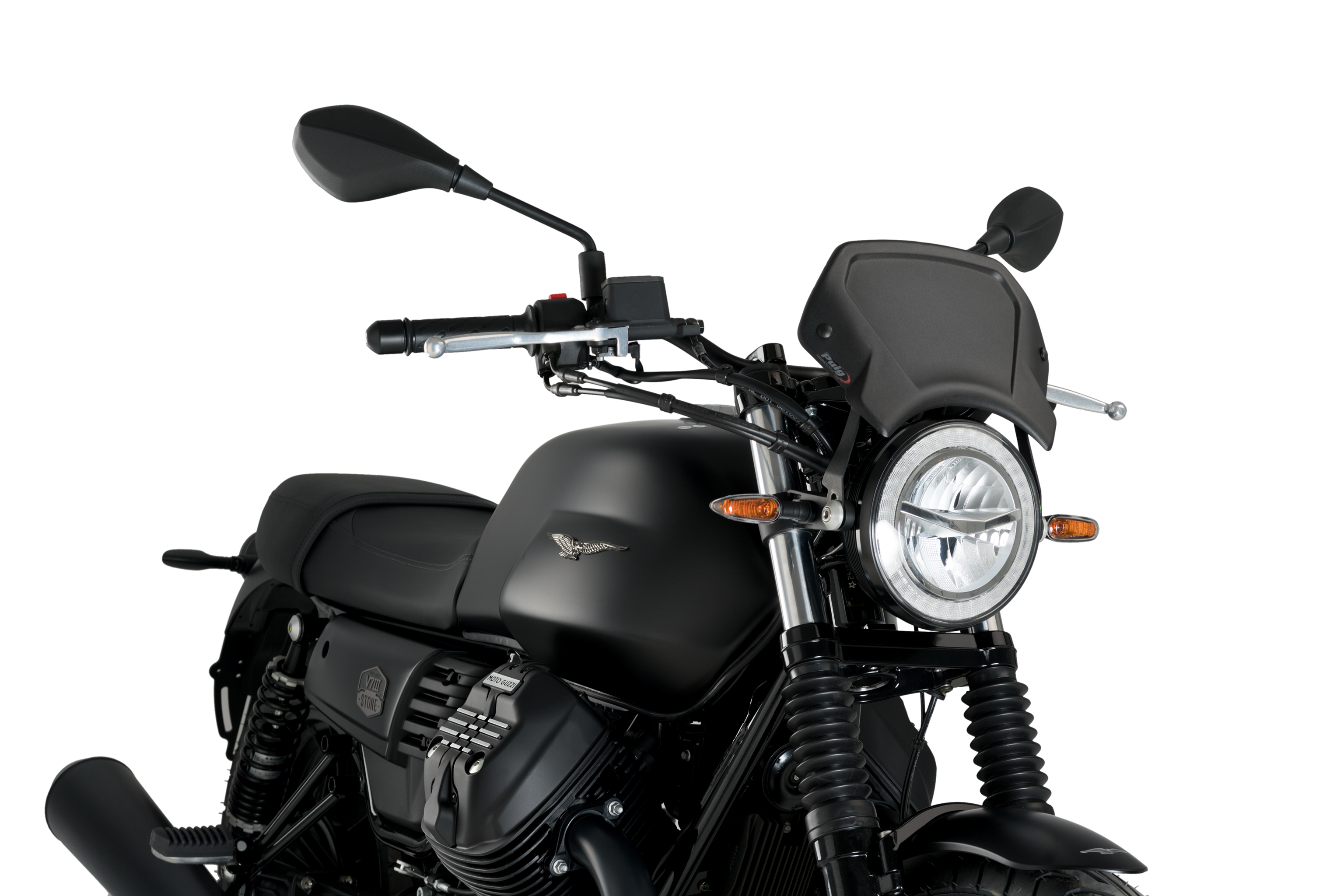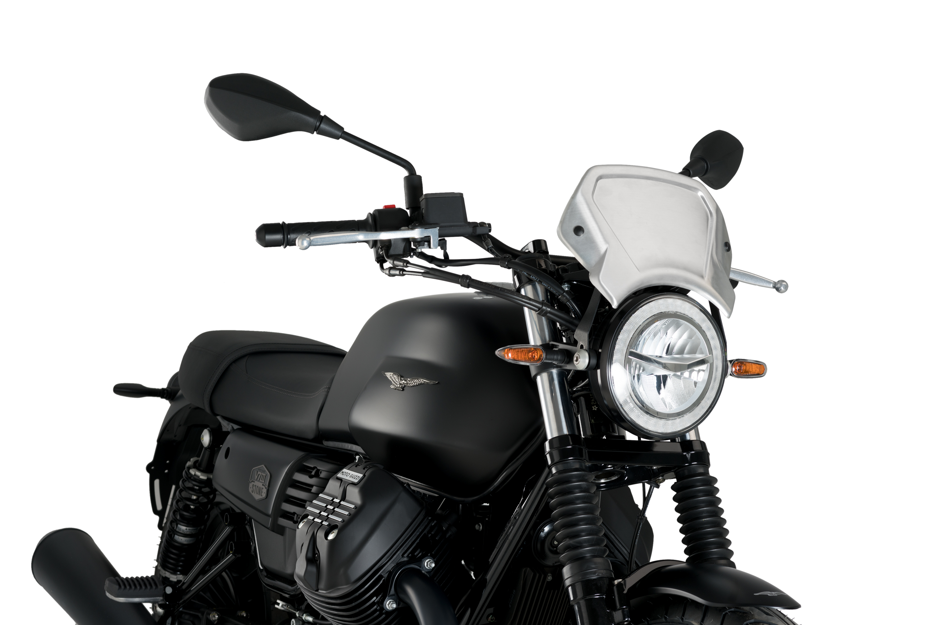 As for the assembly, the Puig Aluminium frontplate has two anchoring points and an universal iron support. Puig also has specific supports if you need them for your motorcycle model.