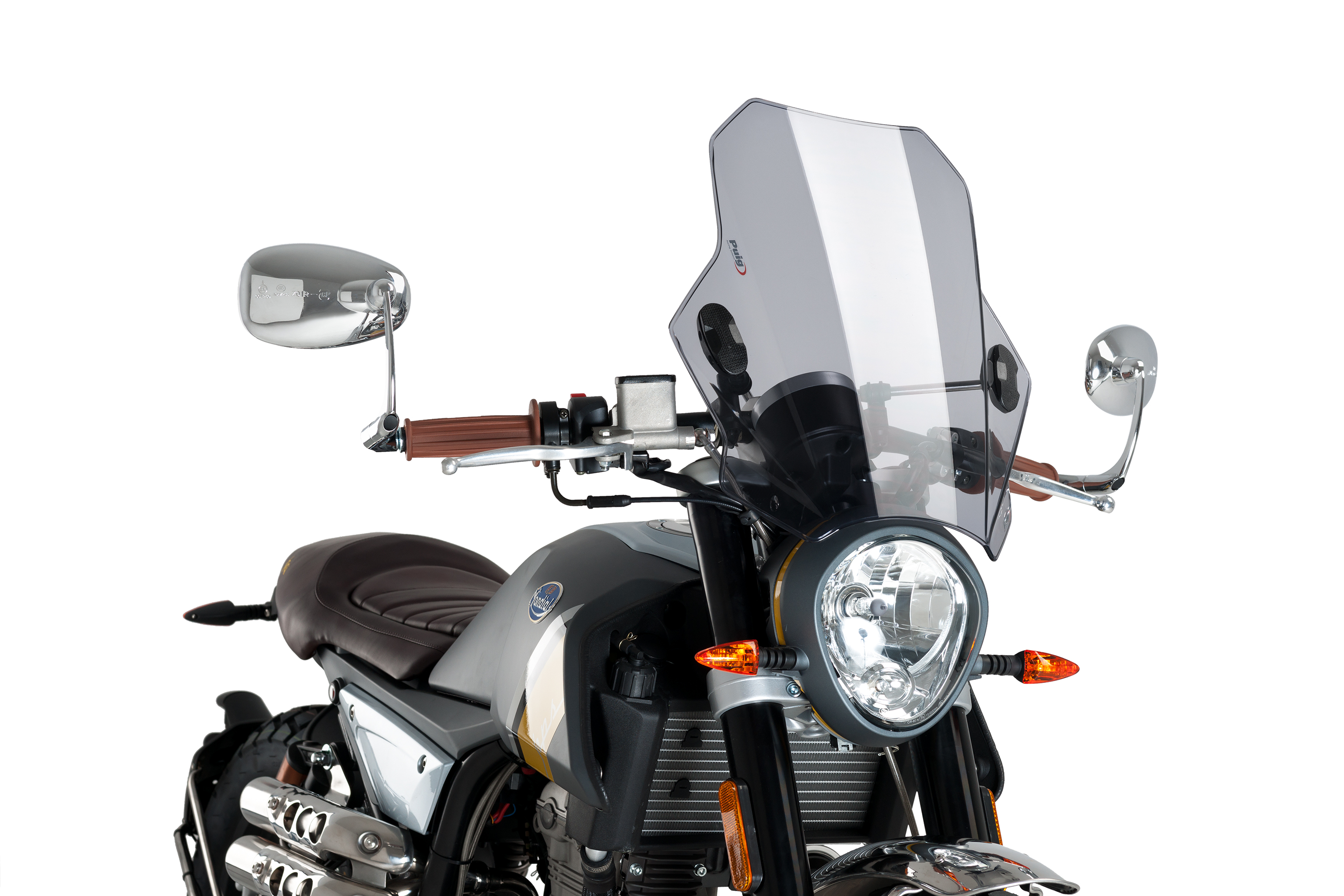 Renew the image of your motorcycle and protect yourself against possible inclement weather during the ride with the new universal Bat windshield from Puig.