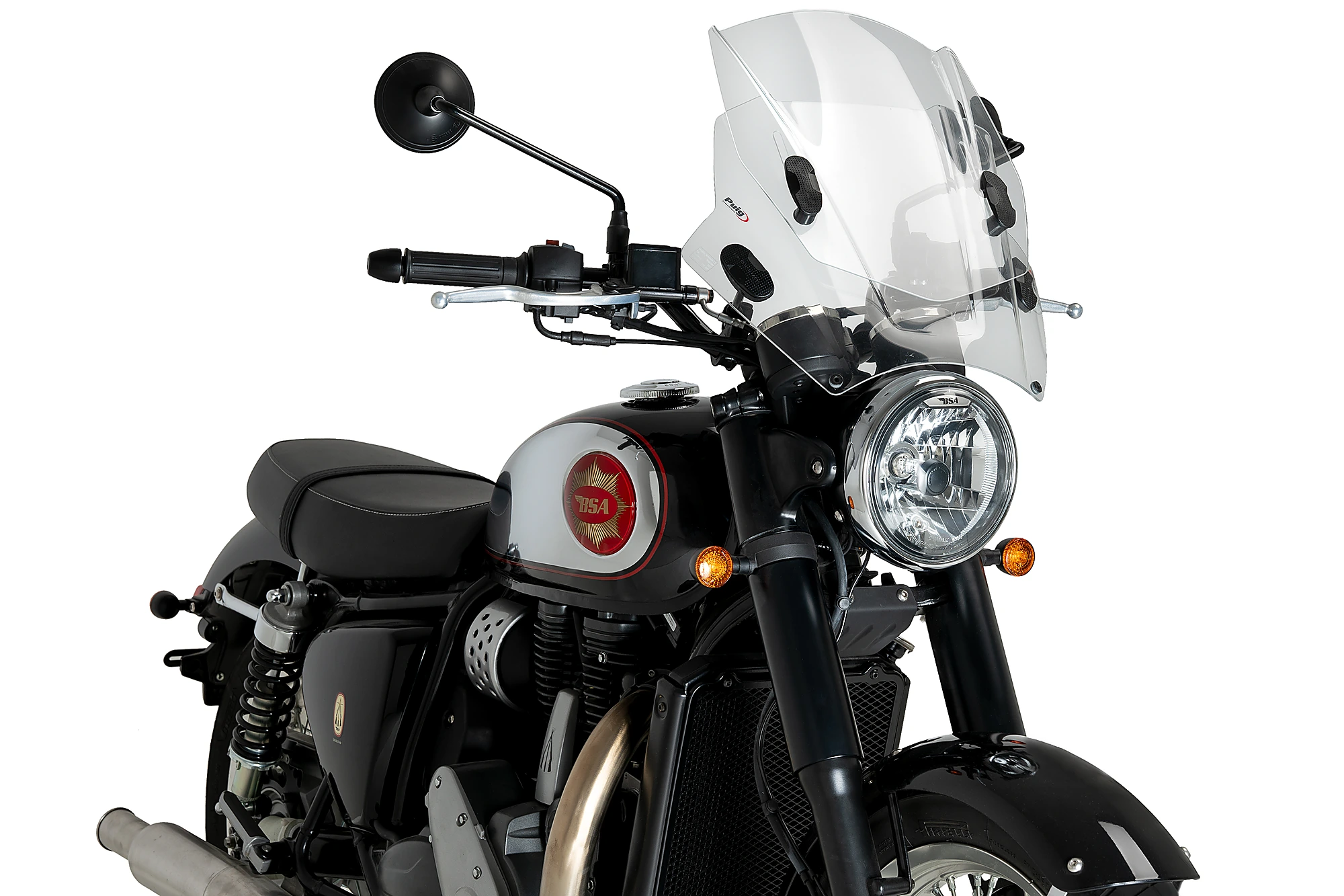 Renew the image of your motorcycle with a round headlight, with Puig’s innovative Up & Down bike windshield. Manufactured in 3mm high impact acrylic material that makes it highly resistant to impacts and strong against the inclemencies of the weather, this product stands out for its versatile design and for its easy assembly, but above all for the two screens that come together, which they allow it to regulate the height of the fairing providing total protection from the wind.