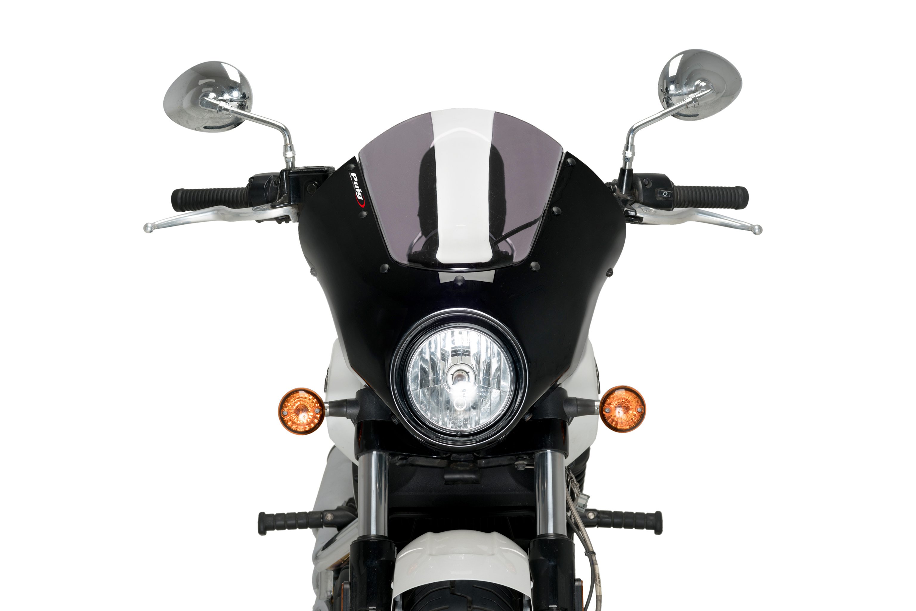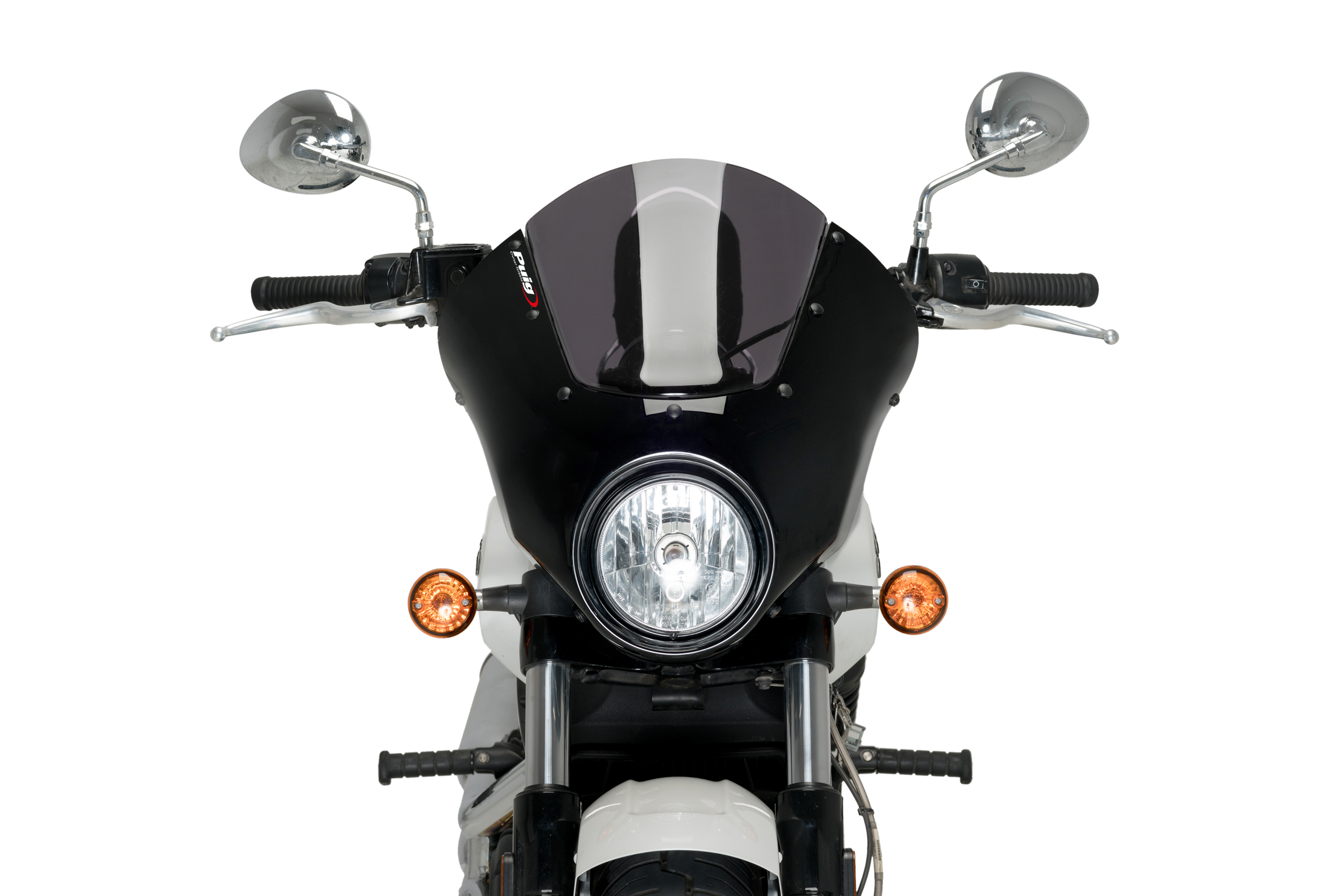 This semi-fairing adapts perfectly to the headlight, whether round or shaped as is the case with the Vulcan S.