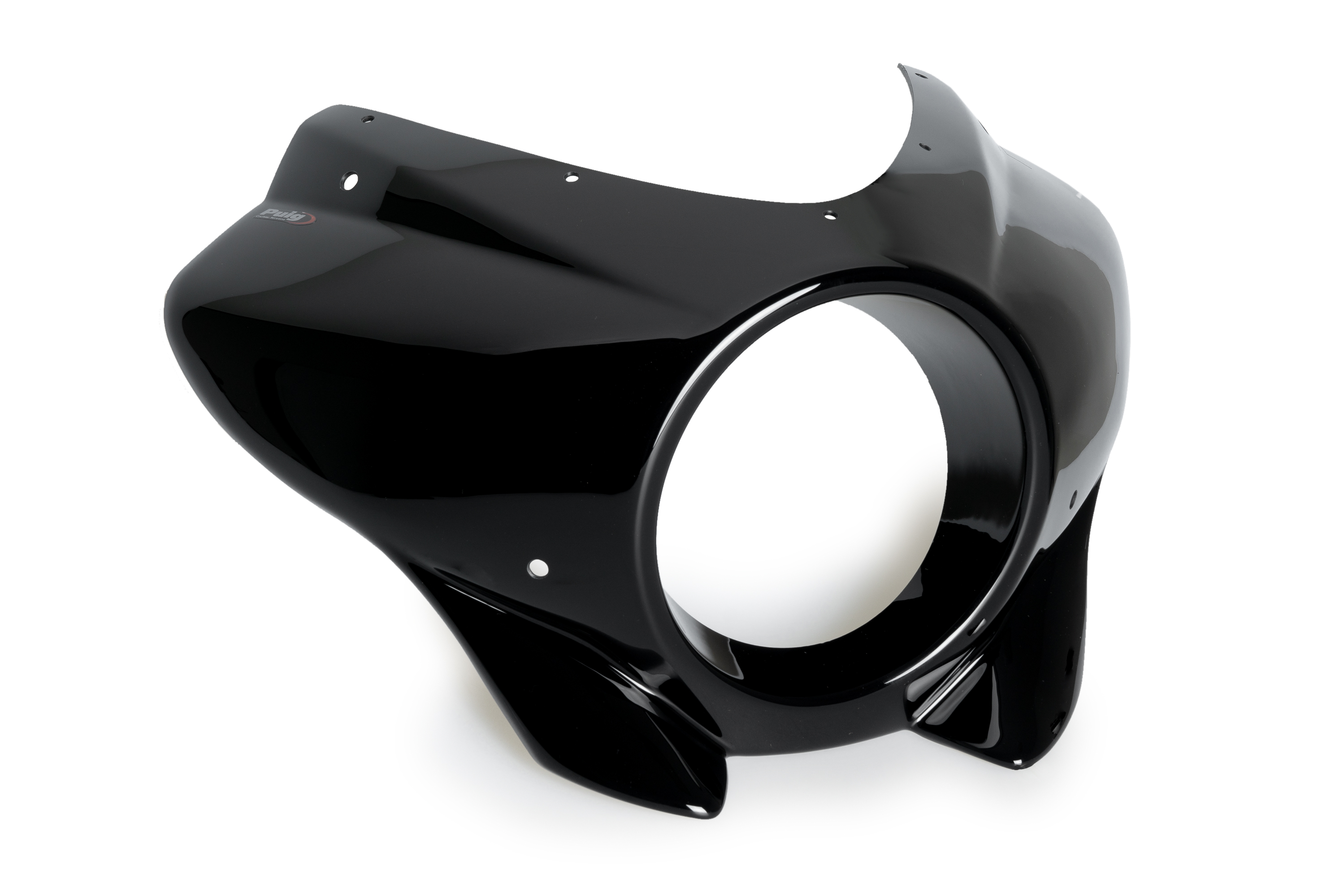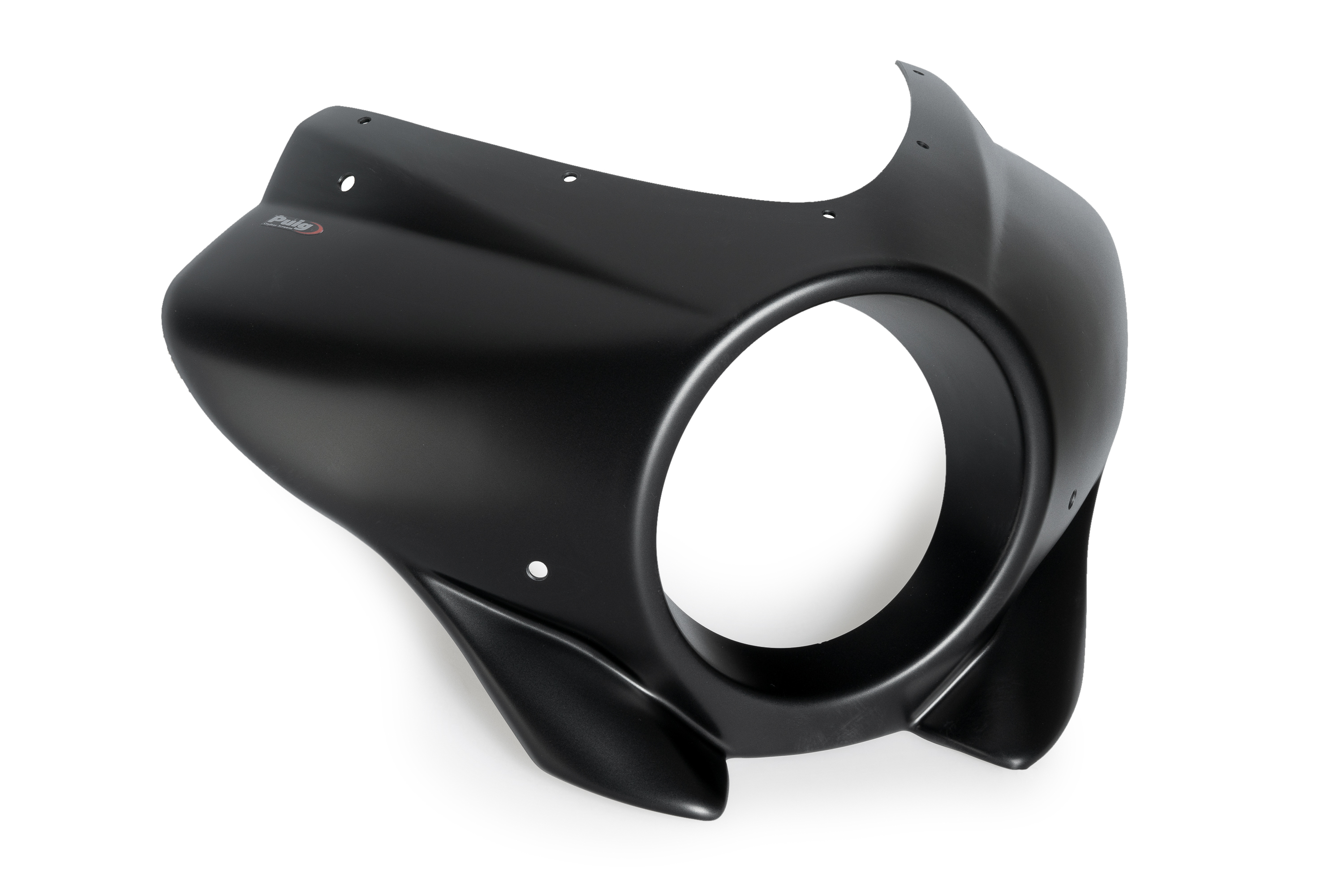 The Mirage semi-fairing is a very universal accessory since its design easily adapts to motorcycles with a round headlight, covering the front part around the headlight, protecting it from dirt and small impacts.