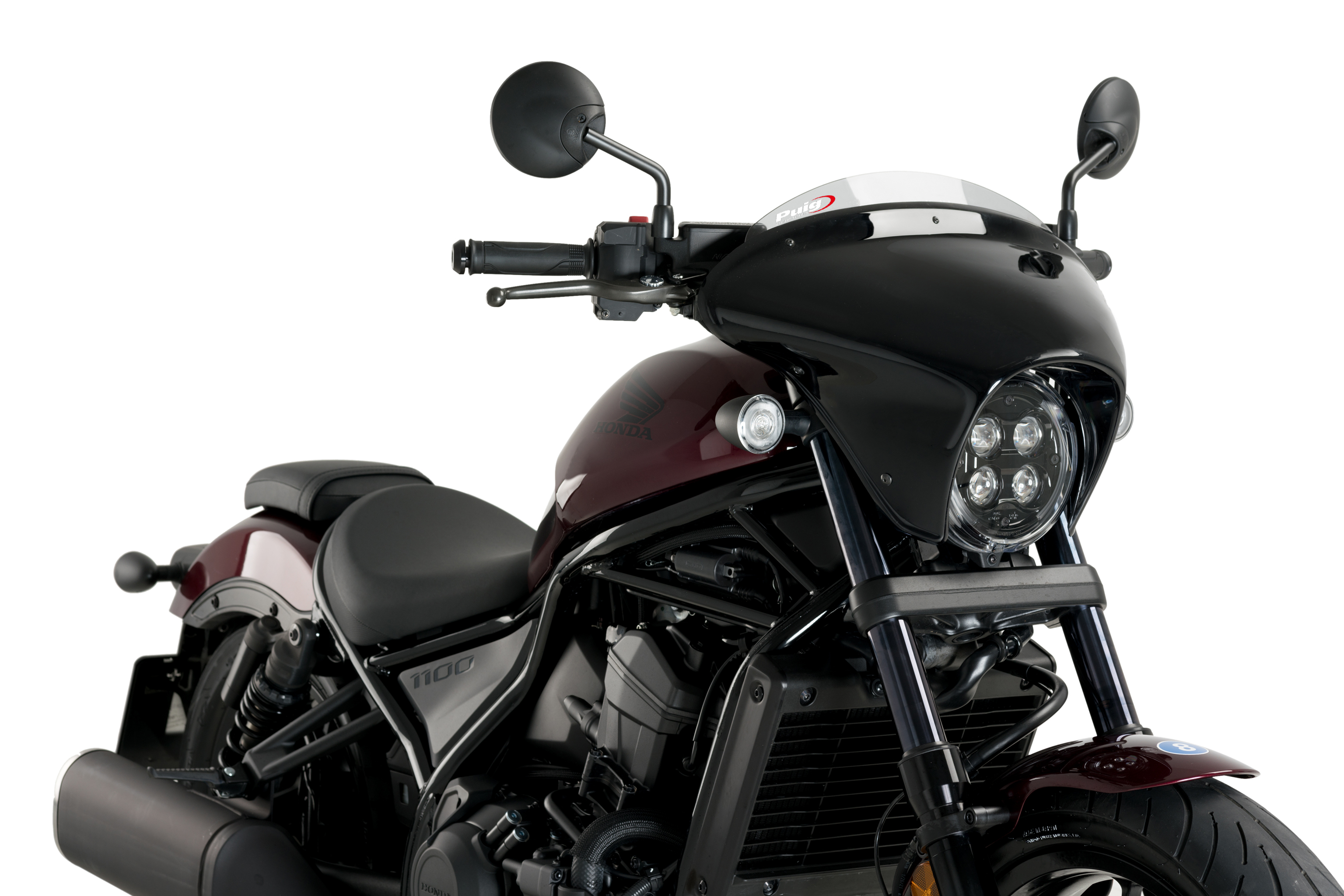 It is available for the most popular custom models: Harley Davidson, Honda, Indian, BMW, Kawasaki, Suzuki and Yamaha. Puig does not forget the rest of the models, offering a universal Batwing SML windshield with a complete mounting kit included to adapt it to your Custom bike.