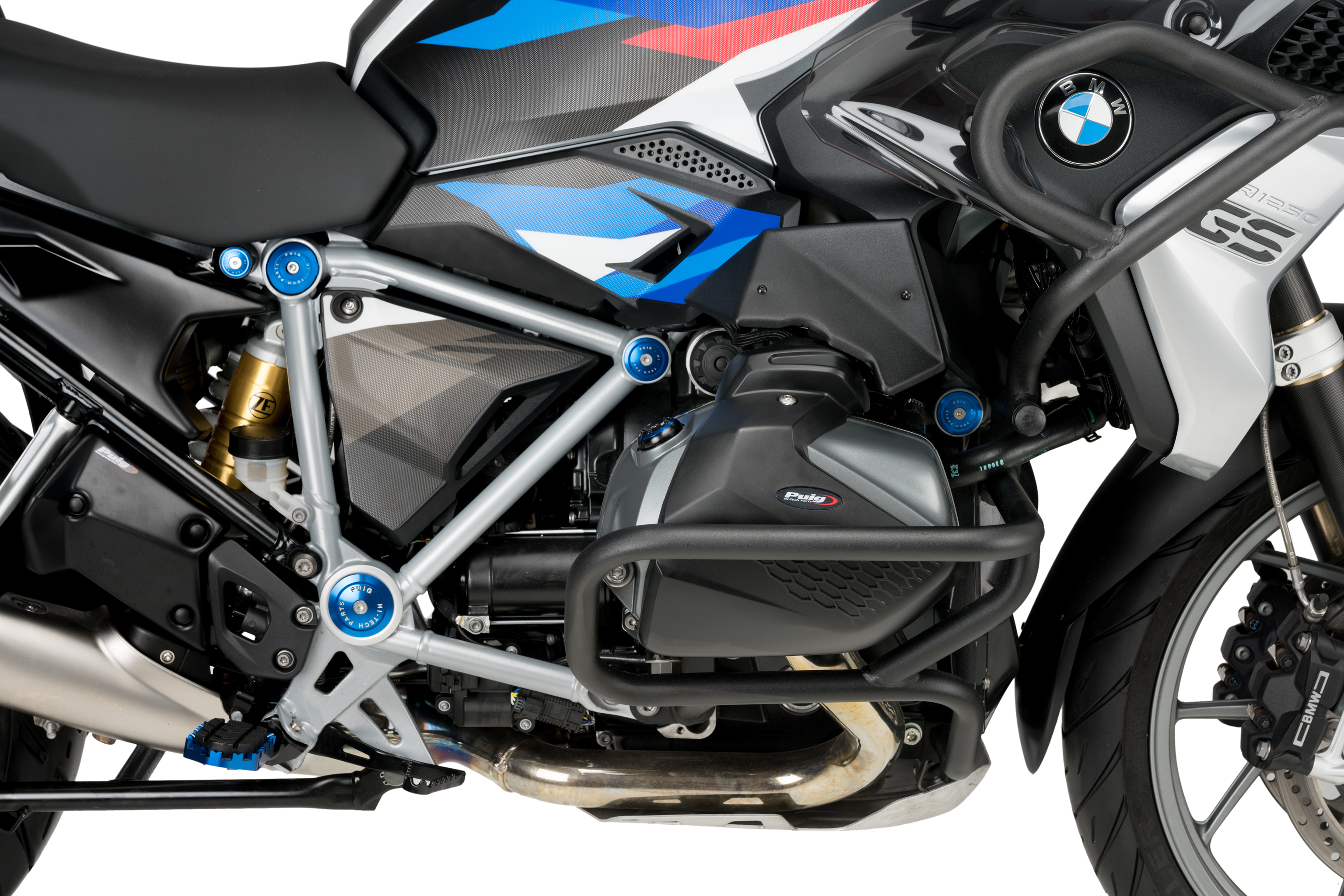 Designed and developed by Puig, they are machined from a single block of aluminum with a black anodized finish, and have laser-engraved logos to create a perfect finish.