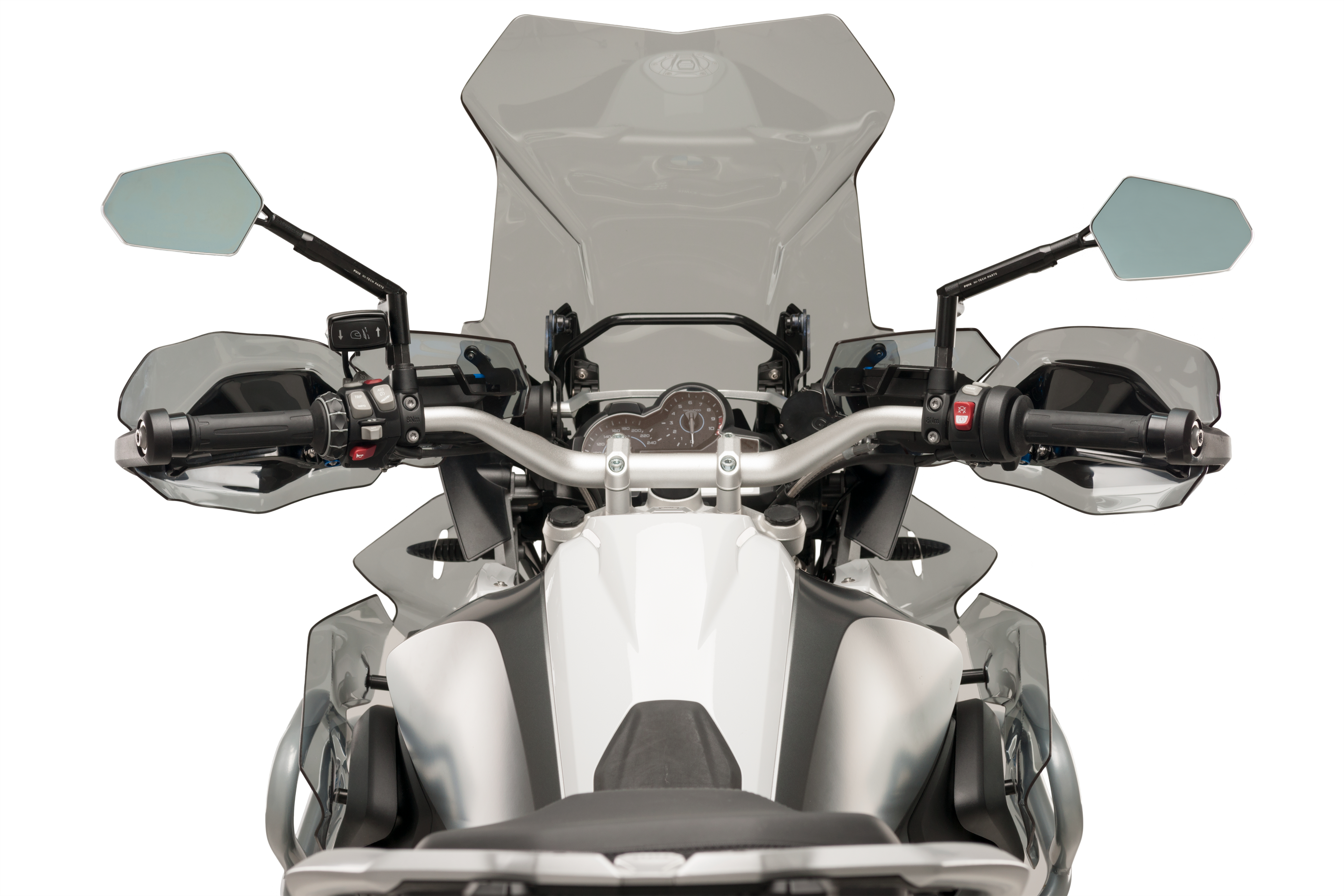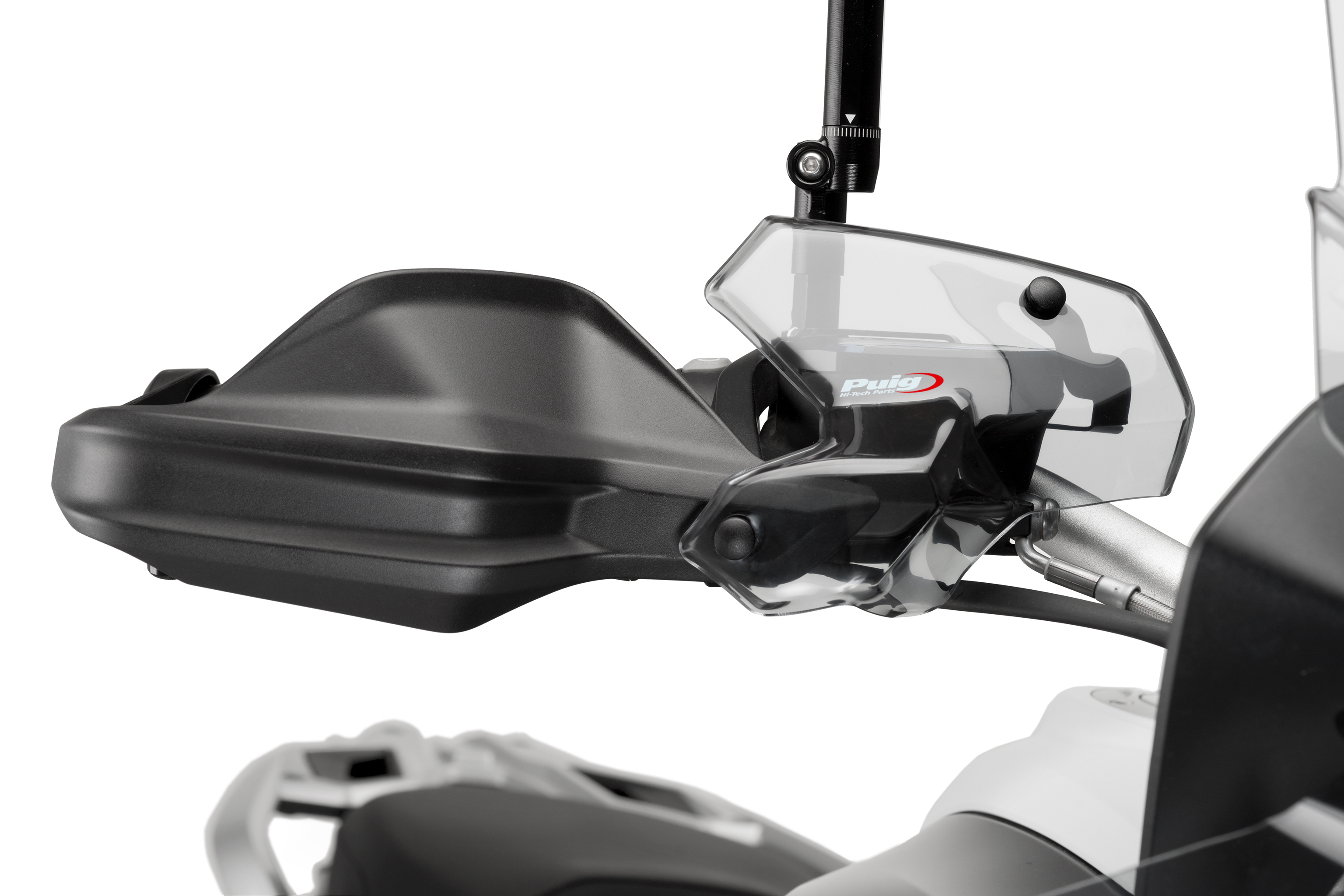 With the deflectors of the handlebar for BMW from Puig you will be able to deflect the direct impact of the air on the torso of the rider while riding, reducing the fatigue and allowing a new and improved aerodynamic function line to the motorcycle. In addition, they protect sensitive parts of the rider like the shoulders.
