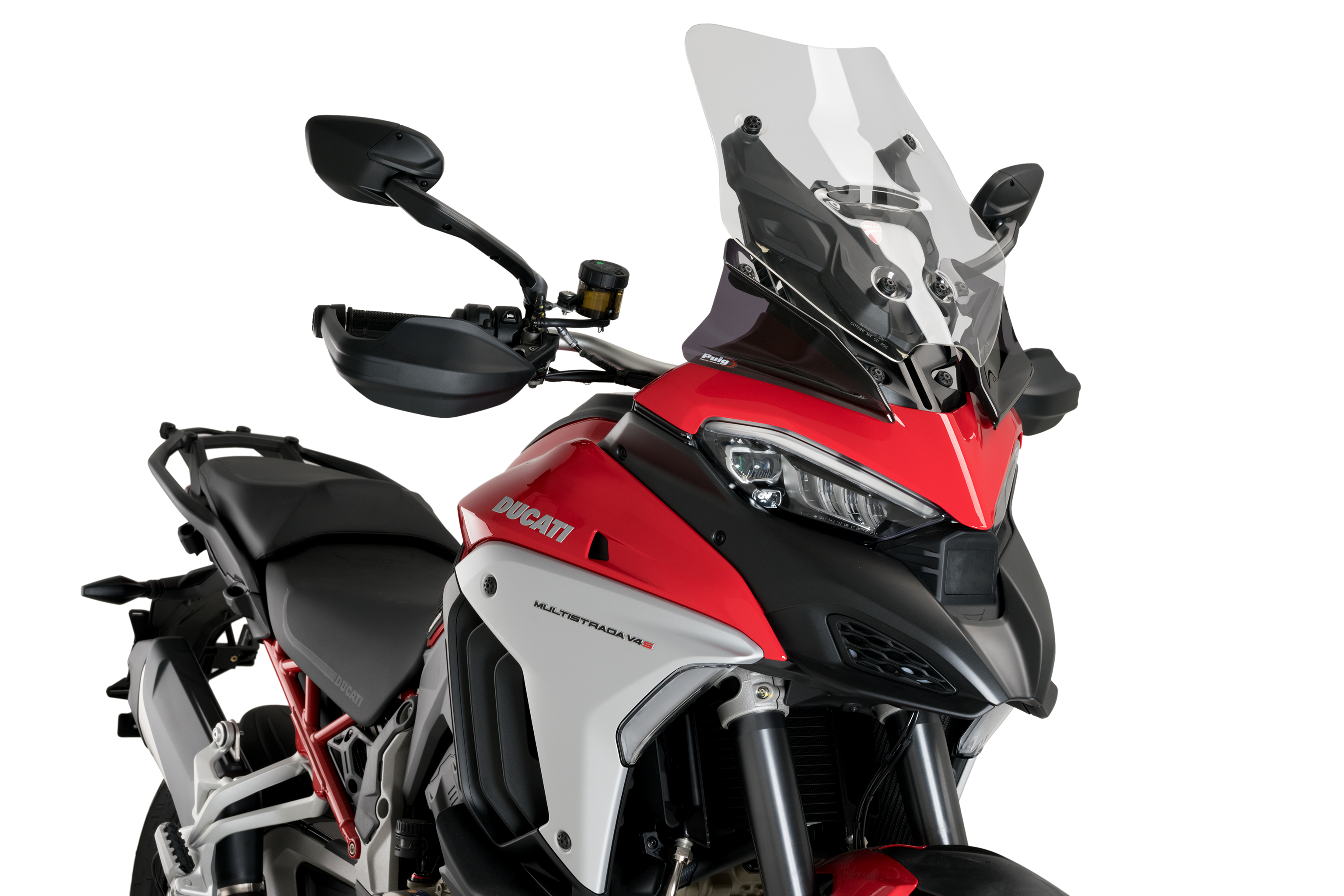 Its minimalist design integrates perfectly with the sporty aesthetics of the Ducati Multistrada V4'21, resulting in the ideal complement for those looking for extra protection to enjoy the touring capabilities of this Maxitrail.