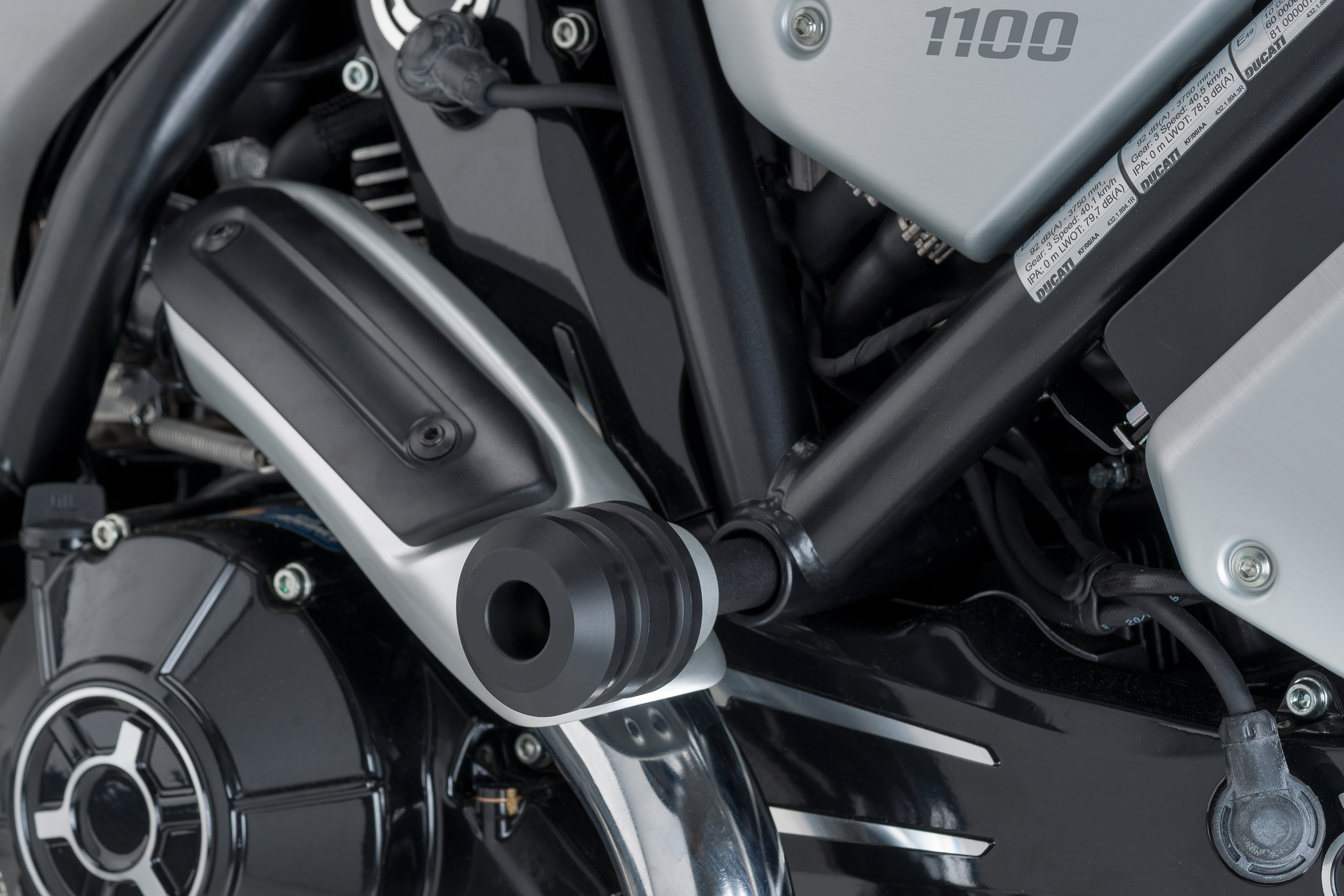 The sliders, which do not extend from the height of the handlebar, are designed not only to protect the engine, but also the chassis of the motorcycle. In case of contact with the ground, its impact is subsequent to that of the footpegs.