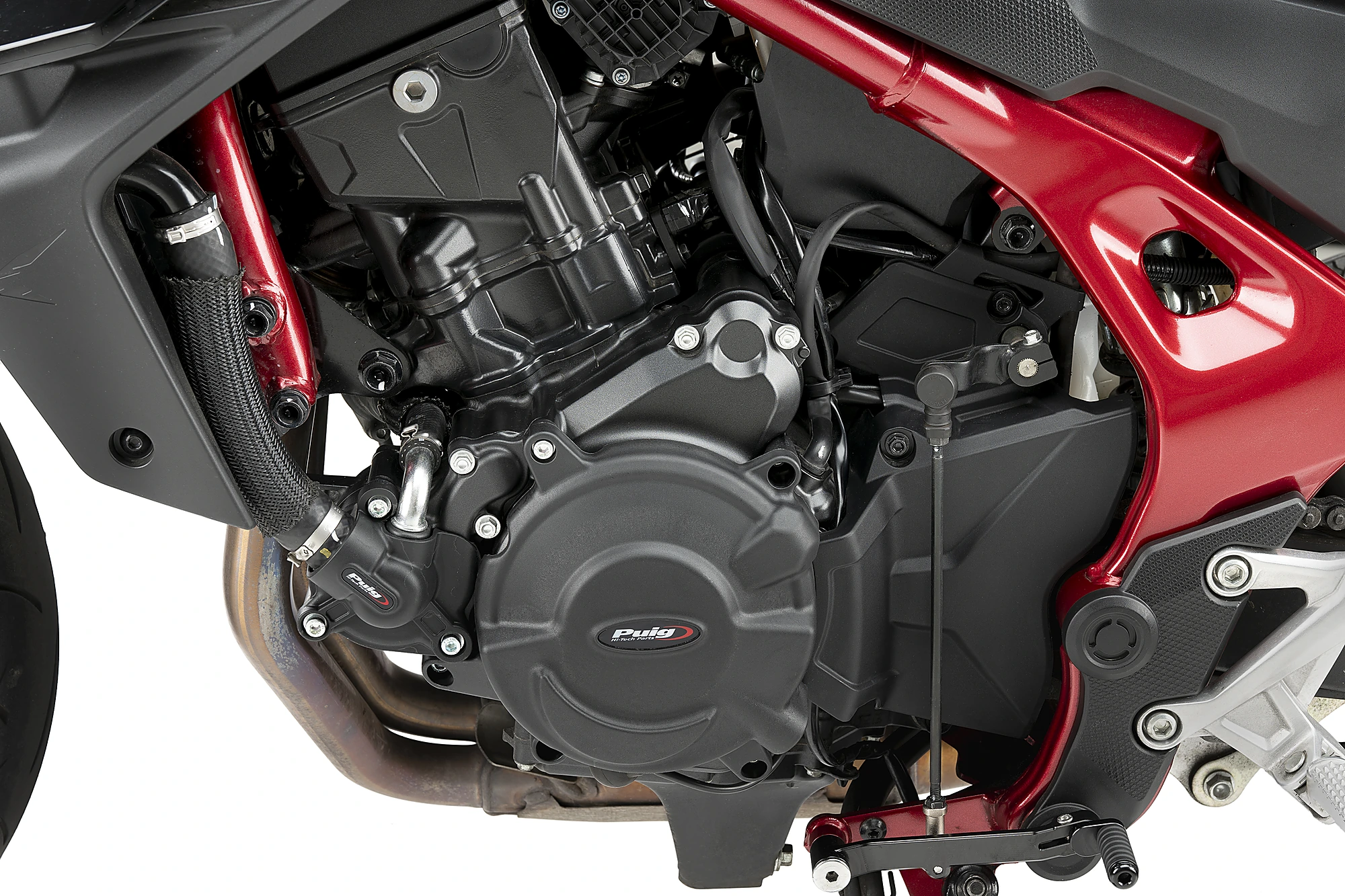 In order to preserve the aesthetics of the motorcycle, the protective cover can be purchased in matt finish and attaches to the motorcycle by screwing it onto the motor housing itself.