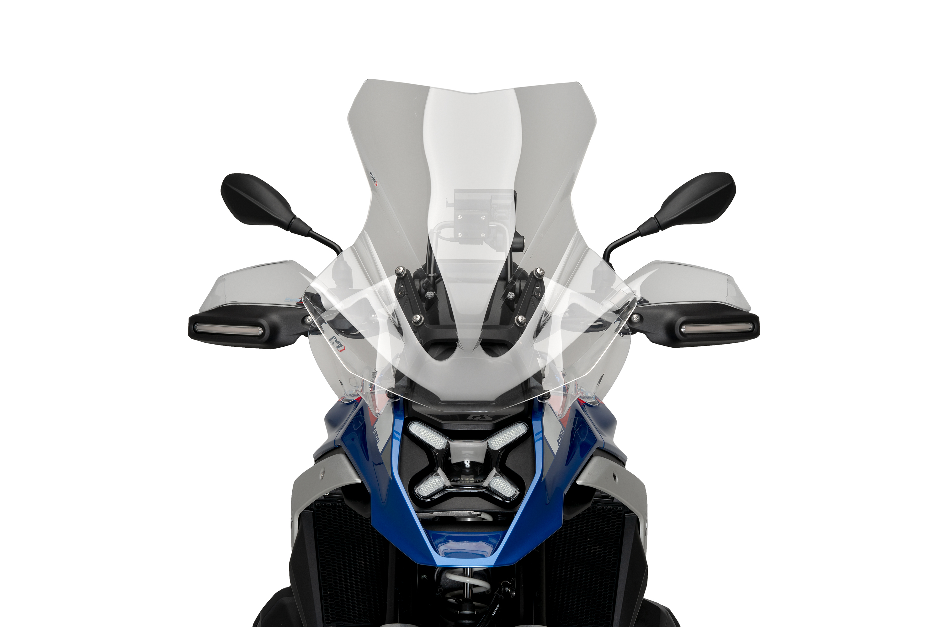 Its total dimensions are 275mm wide by 130mm high. Puig's handguard extension is compatible with both the original BMW windshield and the Puig windshield.