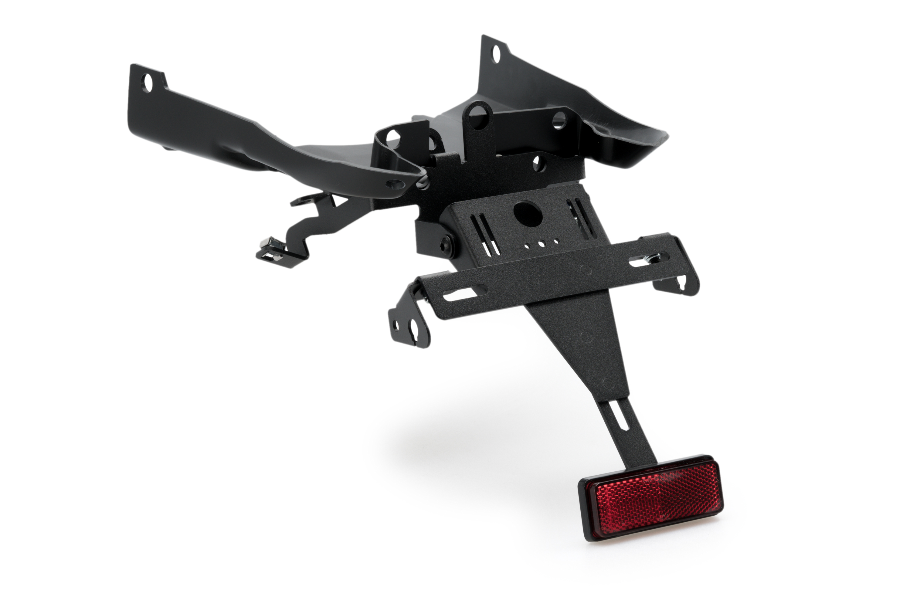 Replace your motorcycle's original license plate holder with the Puig license plate support, which, thanks to its elevated position, provides a sporty look to your bike. The set combines steel parts with an epoxy-painted finish and polyamide elements, achieving a significant weight reduction compared to the original holder.