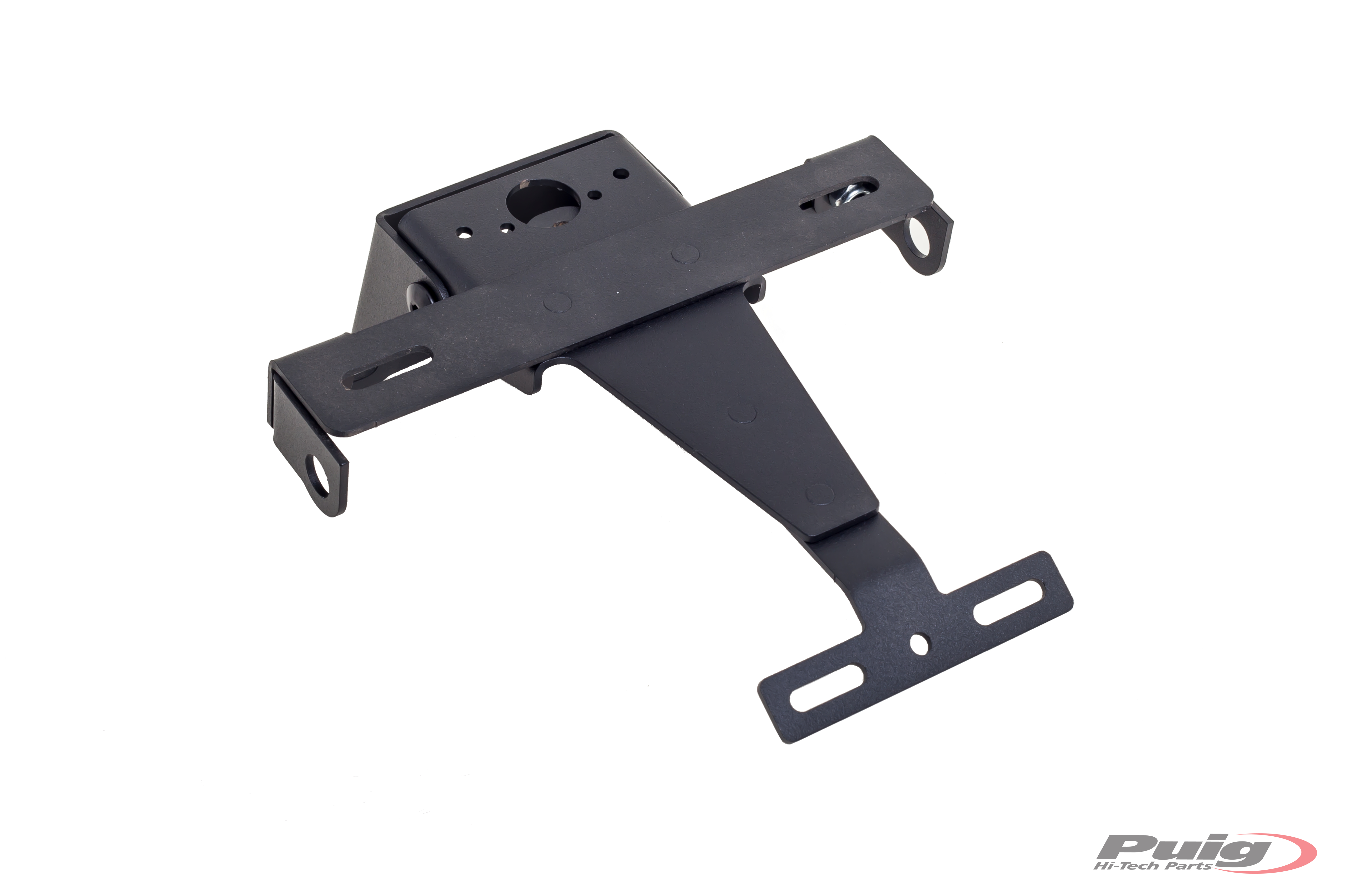 Replace your motorcycle's original license plate holder with the Puig license plate support, which, thanks to its elevated position, provides a sporty look to your bike. The set combines steel parts with an epoxy-painted finish and polyamide elements, achieving a significant weight reduction compared to the original holder.