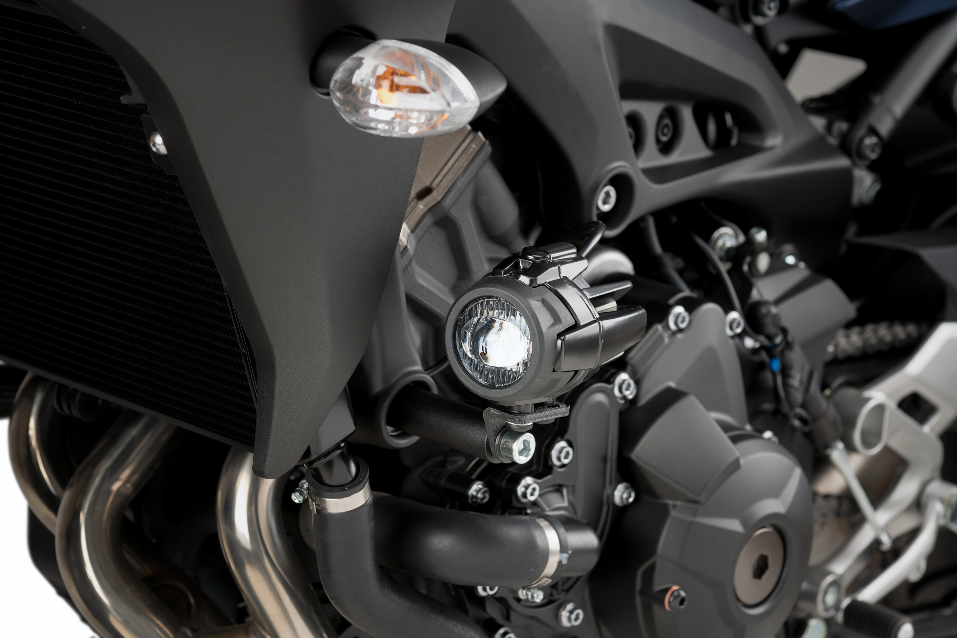 Universal anti-fog LED lights and housing in aluminium painted black guarantee better visibility even under fog, rain or snow conditions. With its white light tint, it offers a brightness differentiation on the road and therefore, we can corroborate that they are the perfect complement to the motorcycle’s headlight.