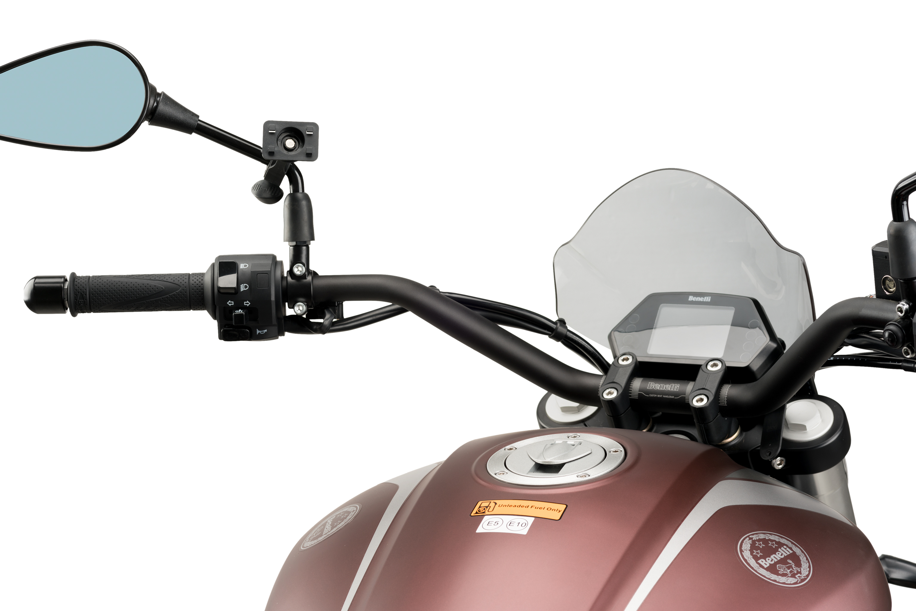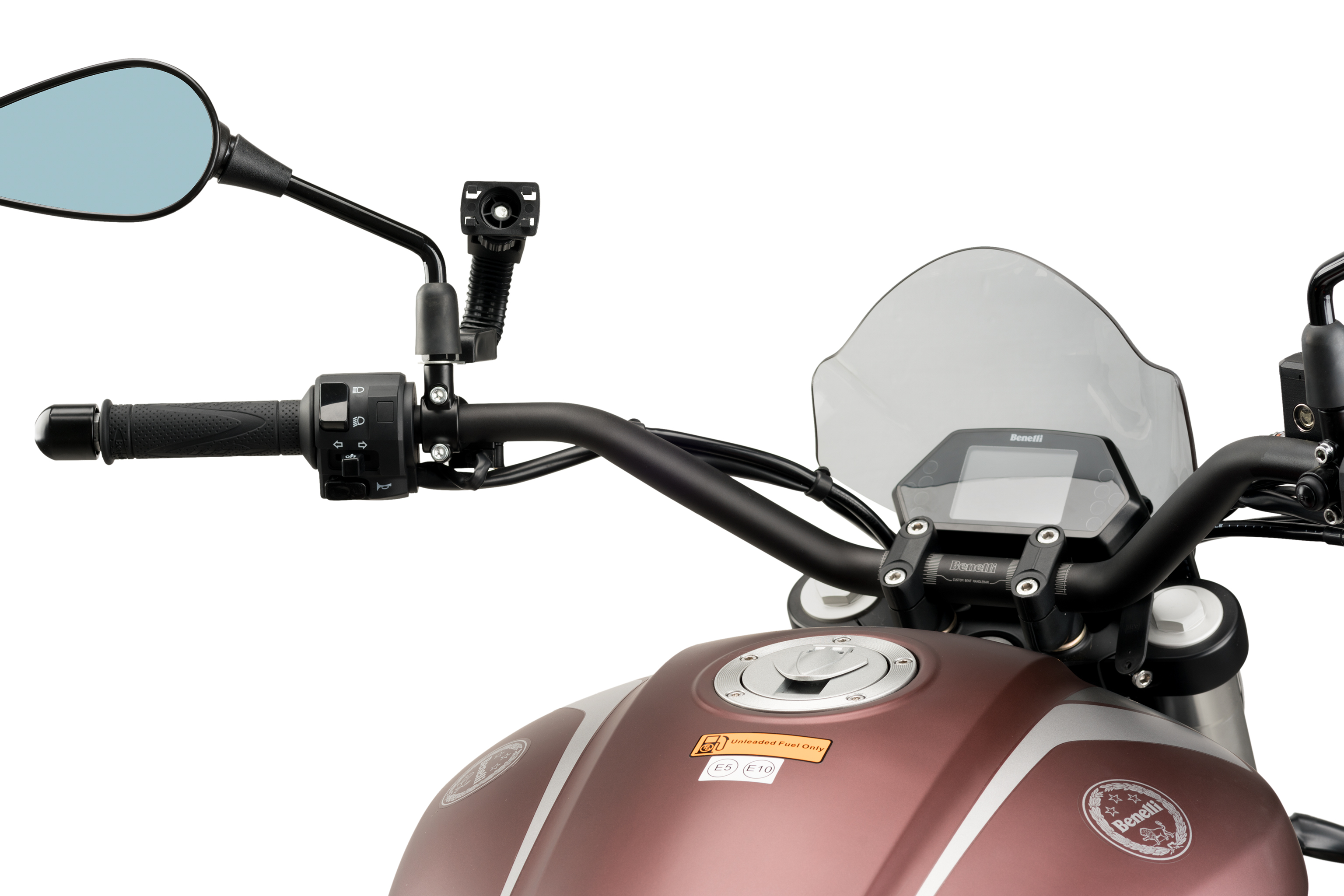 Once the support is installed, it is necessary to acquire a handlebar support to be able to mount the cel phone. You can get the Puig support for handlebar ref. 3534N.