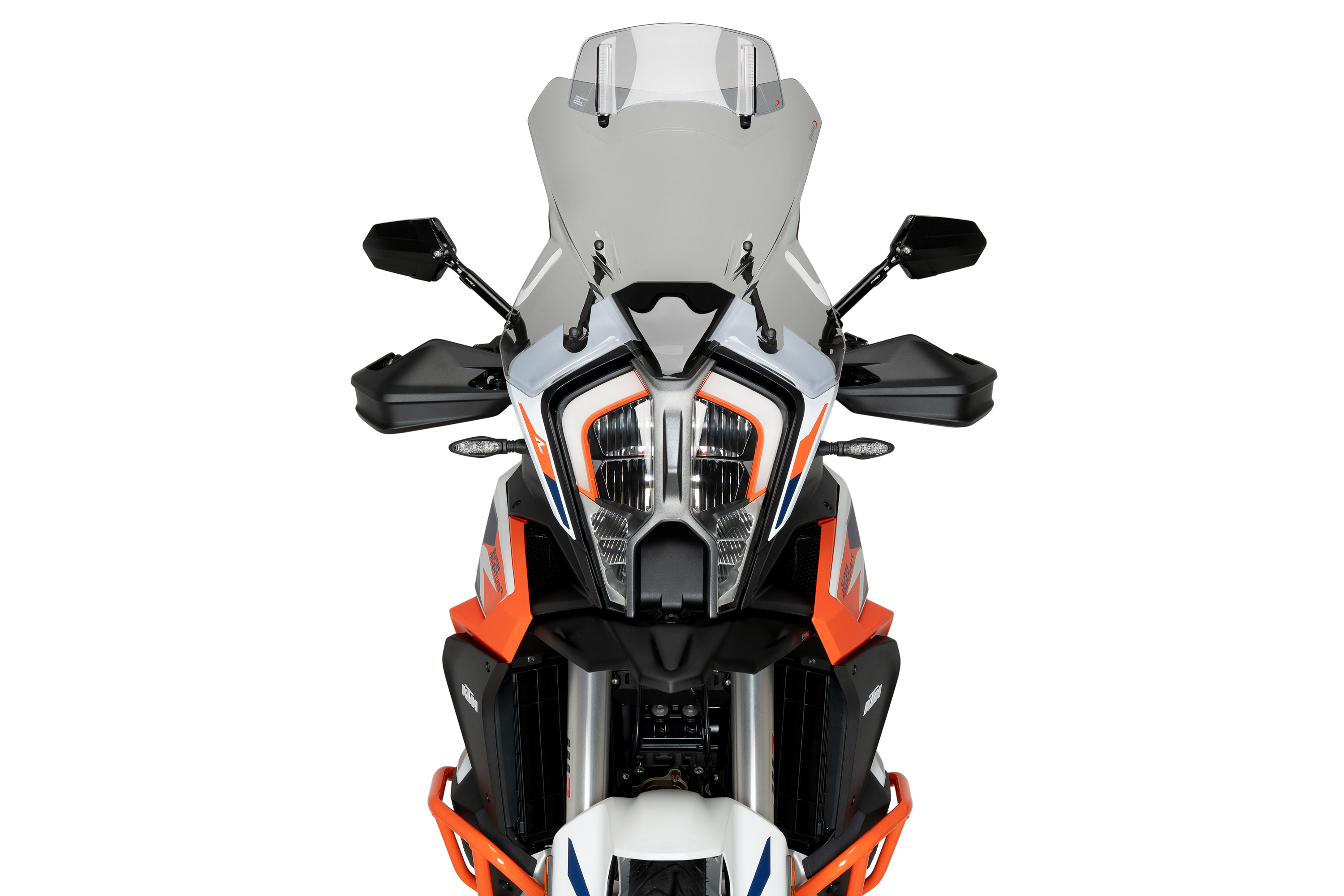 Designed specifically for the KTM Adventure 1290, its simple and elegant shapes fit perfectly with the lines of the bike, extending them naturally as if it were the missing piece on the front of the Austrian Trail.