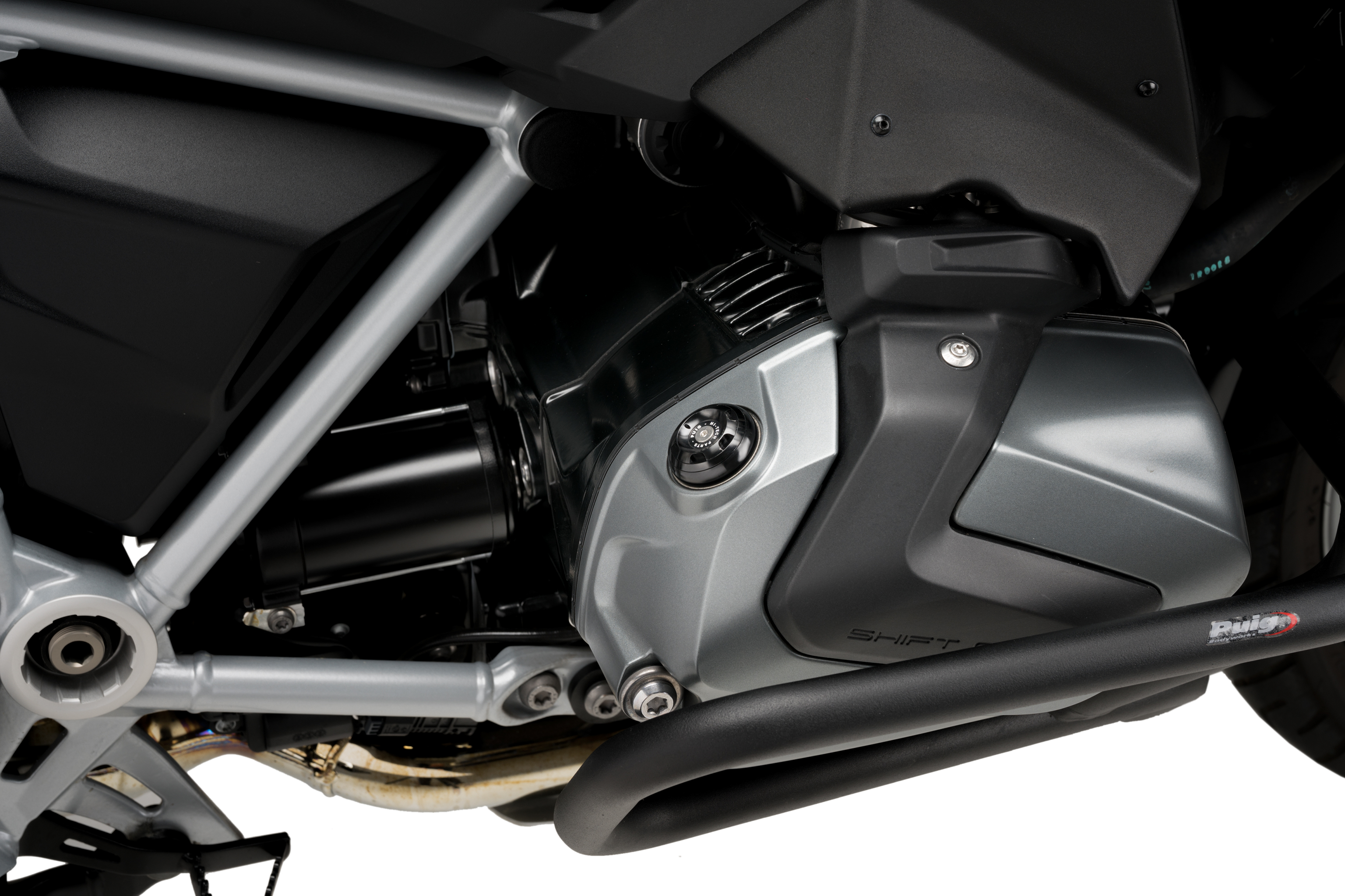 From a purely functional original part to a design part that stands out in the engine assembly. The marked racing character, due to its reduced dimensions and machining lines, is joined by the elegance of a black anodized set and a colored ring that allows it to blend in with the rest of the motorcycle.
