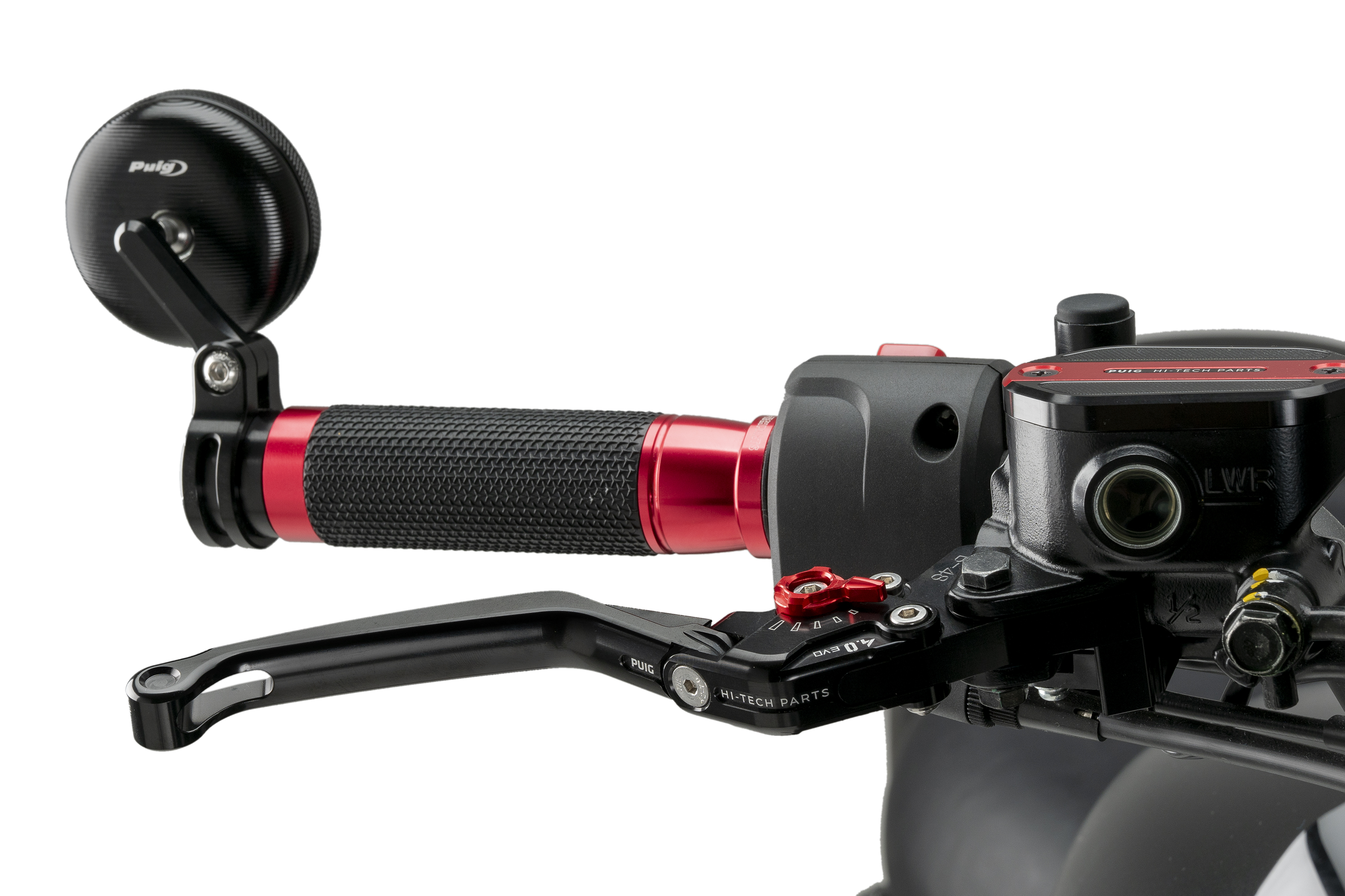 The Rearview Tracker is a non-homolagated product and its sizes are 58 mm in diameter, 92 mm in height and 72 mm in width (from the base) and in reference to the glass, the rearview mirror uses an antiglare glass to improve visibility during riding and it’s available for handlebars with internal diameter 13/18 mm.