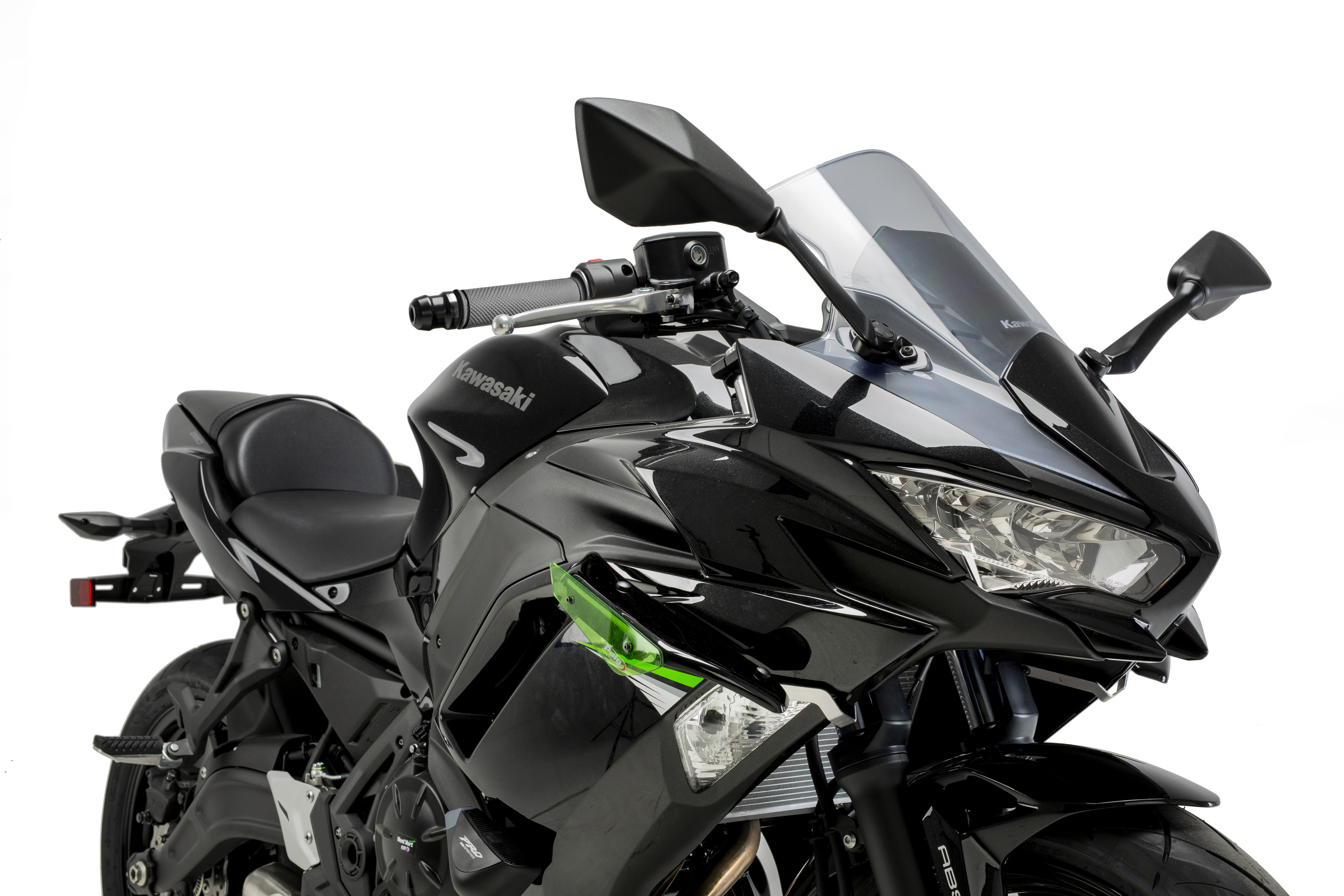 Now you can benefit from the racing aerodynamic technology in your motorcycle. Puig Downforce Sport spoilers have been developed thanks to the experience and tests carried out by the Kawasaki Racing team on the WorldSBK championship circuits. Get the ultimate racing touch and improve the cornering of your motorcycle with these Sport spoilers.