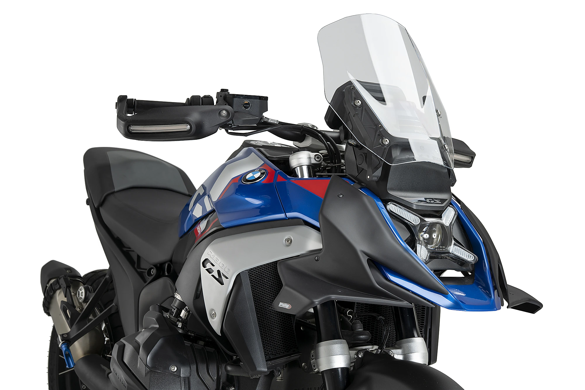 The front wings of the Kit Pista for the BMW R1300GS are the components that most transform the appearance of this iconic motorcycle. With sharp, aggressive lines, they convey power, speed, and competitiveness while reinforcing the sporty character of the R1300GS.