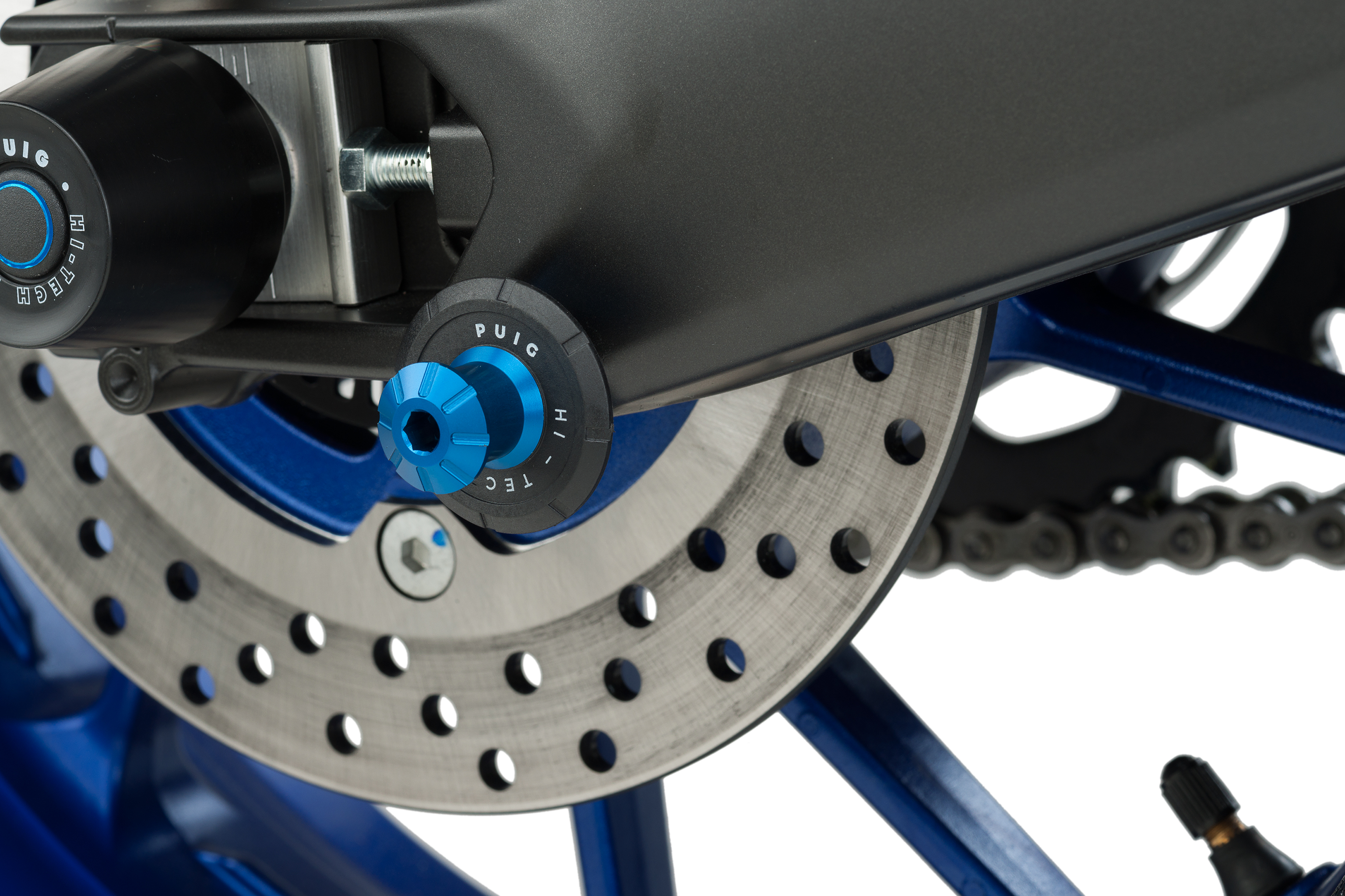 Spools work as a guide to fit a stand and easily raise your motorcycle, quickly and safely. In this case, we present the Spool Pro by Puig. Manufactured from an anodized aluminium billet (reduced weight of 32 gr), it will guarantee the protection of the swingarm from possible scratches thanks to the fact that it comes with a black nylon washer with the Puig Hi-Tech Parts etched on it.