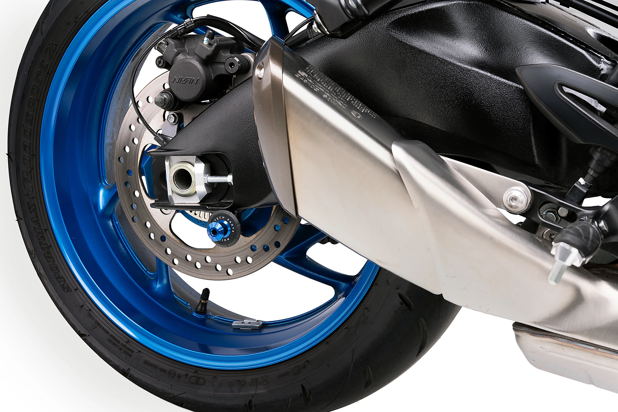 The swingarm is protected by the incorporation of the nylon washer.