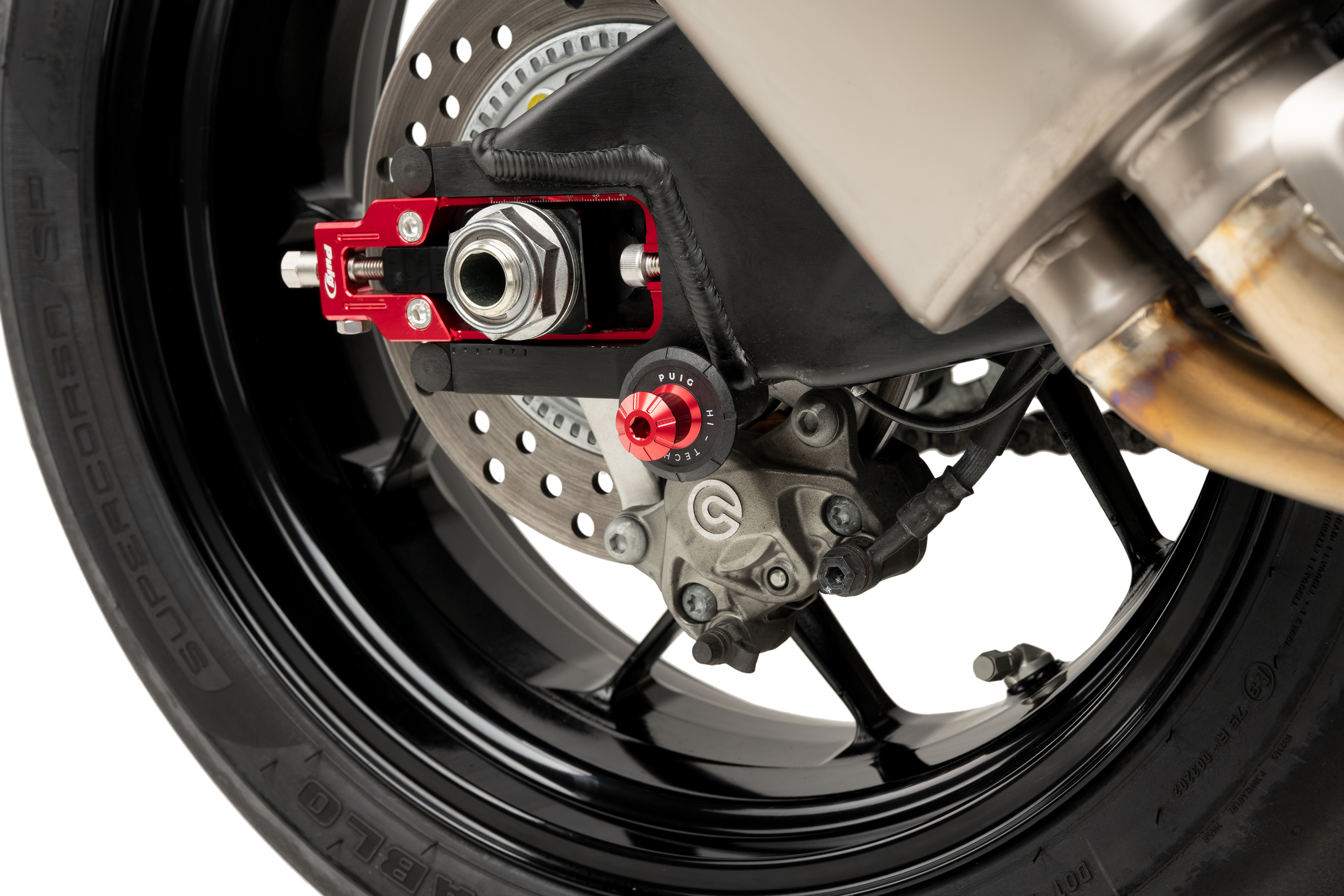 Spools work as a guide to fit a stand and easily raise your motorcycle, quickly and safely. In this case, we present the Spool Pro by Puig. Manufactured from an anodized aluminium billet (reduced weight of 32 gr), it will guarantee the protection of the swingarm from possible scratches thanks to the fact that it comes with a black nylon washer with the Puig Hi-Tech Parts etched on it.