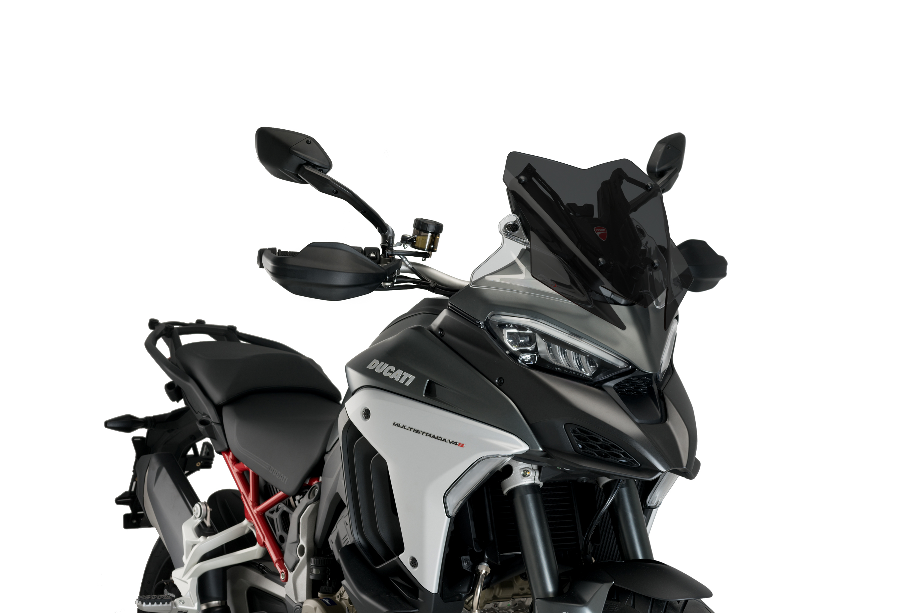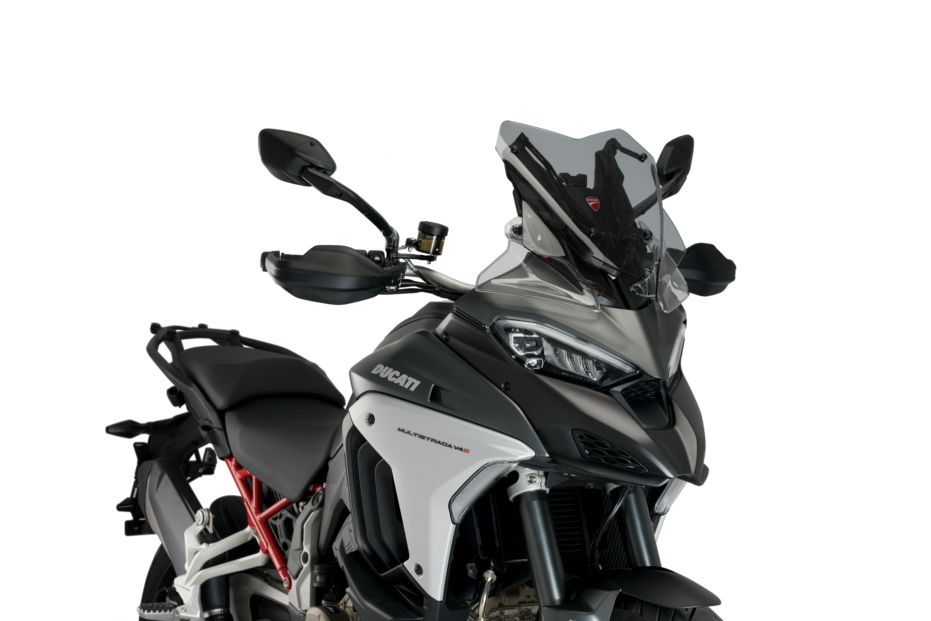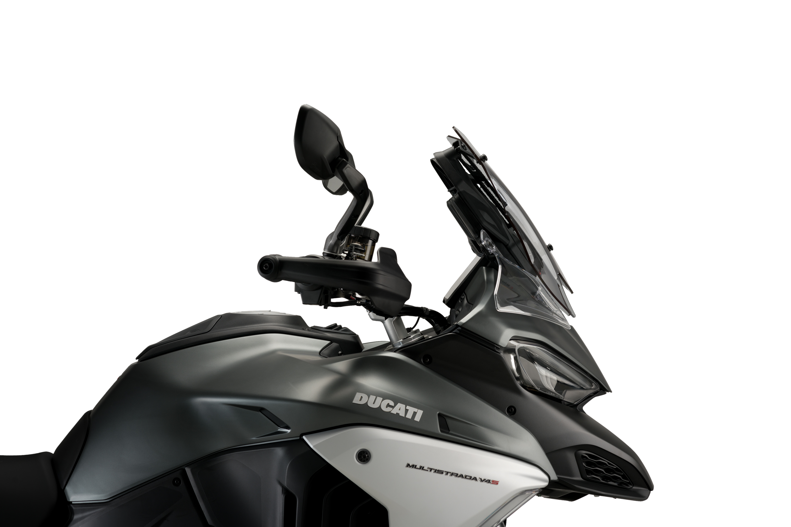The new Sport screen by Puig for the Ducati Multistrada V4 2021 has a refined sporty design and its aerodynamics have been carefully studied to achieve maximum protection for the rider, prioritizing above all else, the style of the renowned Italian motorcycle model.