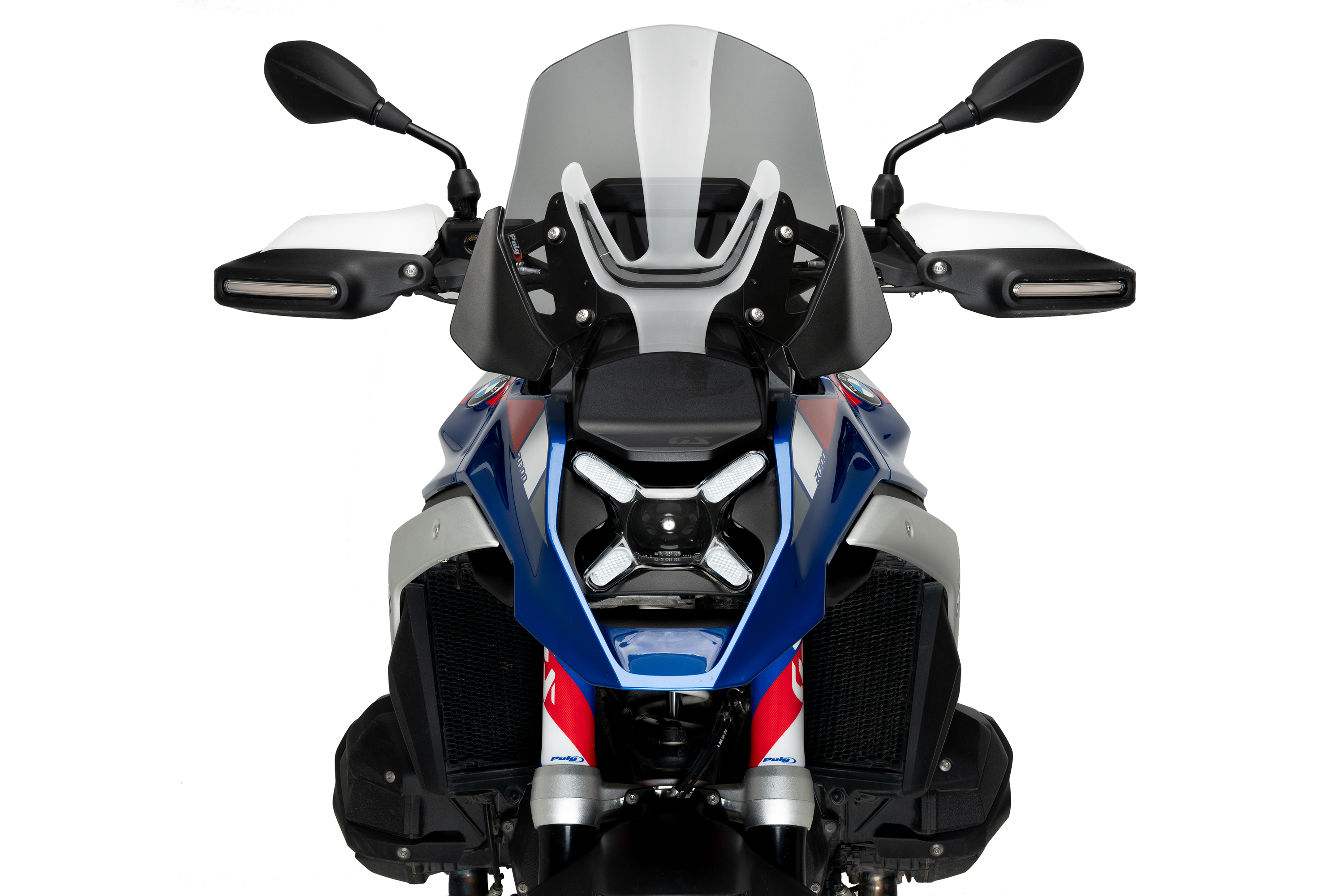 The standard Puig windscreen for the BMW R1300GS (in any of its versions) has the same dimensions as the original manufacturer's windscreen, but Puig offers the option to customize the color to match your bike's aesthetics. Additionally, it features a more characterful design than the original and the undeniable quality characteristic of Puig. It is compatible with other Puig products such as handguard extensions, upper deflectors, and lower deflectors.
