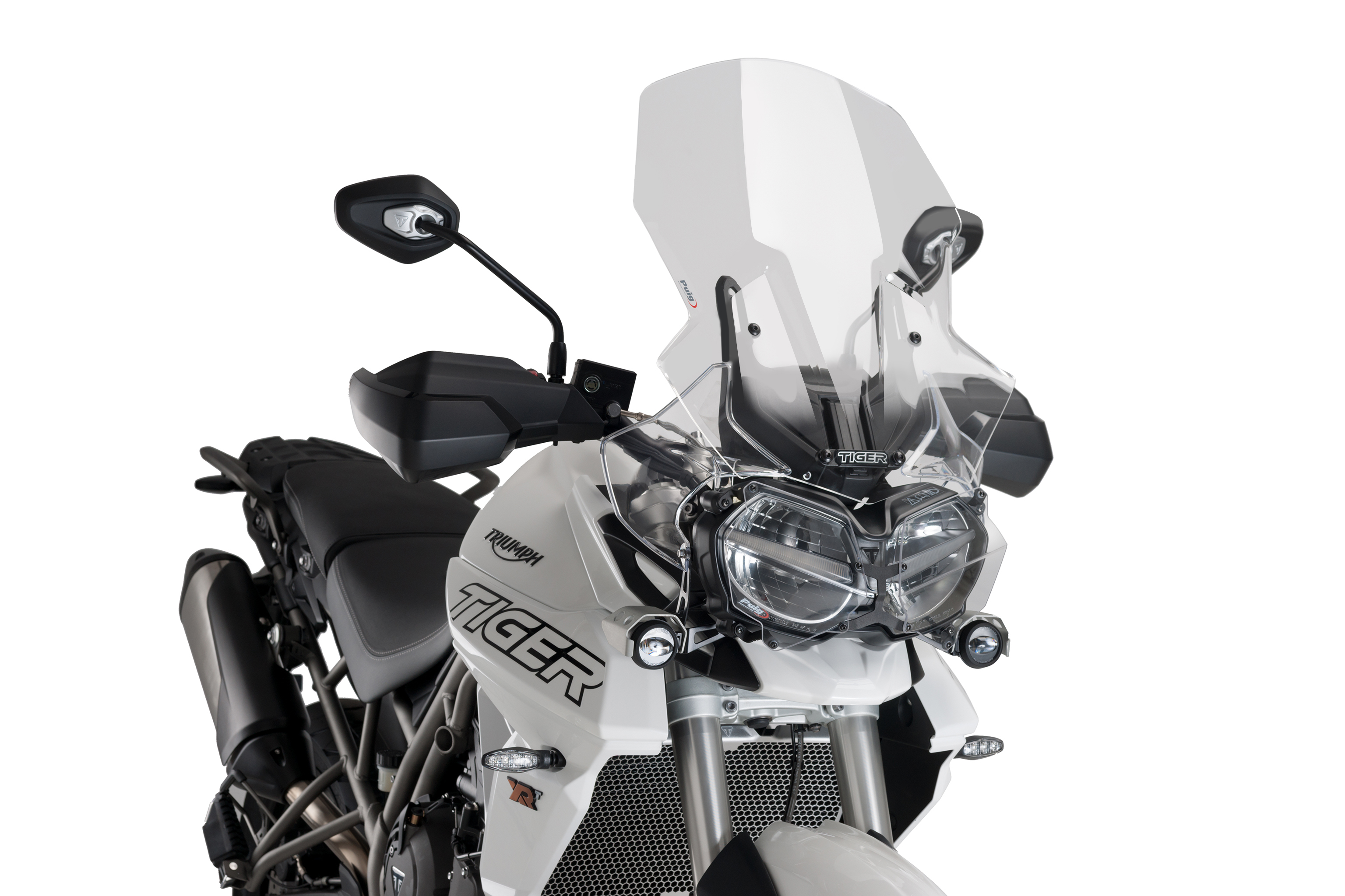 Touring screens, developed by Puig in Barcelona, are designed with the objective to aerodynamically protect the rider without affecting his/her field vision. In addition, these screens fit perfectly with the adventure style and aesthetics of the trail models thanks to their wide range of colors and different sizes.