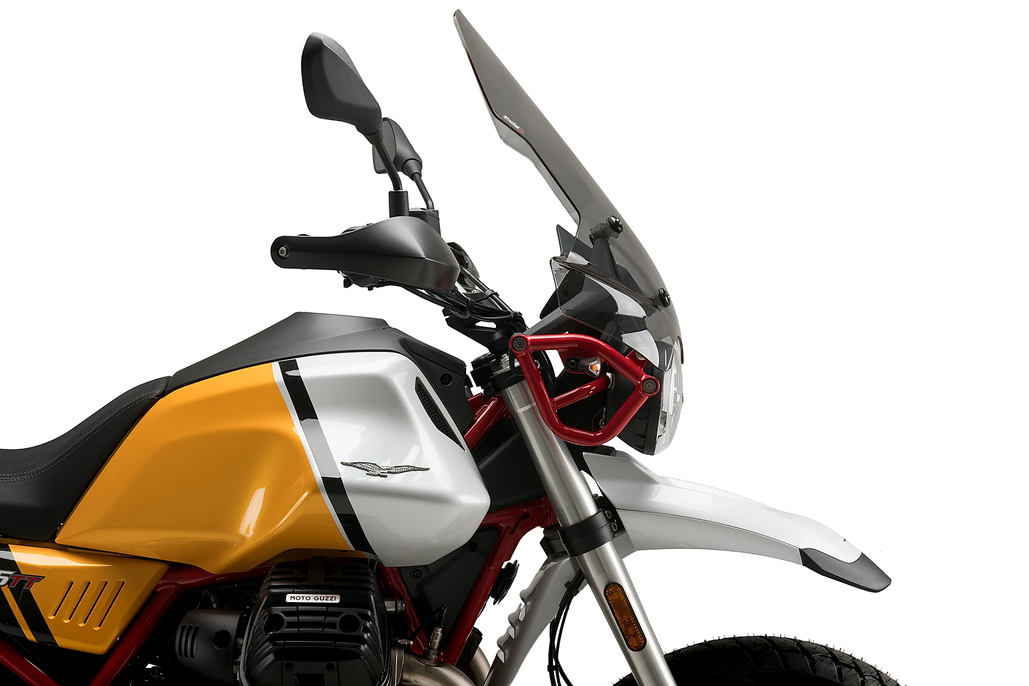 Its elegant and updated retro-inspired lines fit perfectly with the aesthetics of this classic-style maxitrail. The lower part of the touring windscreen is fully adapted to the characteristic double headlights of the V85 TT 850 19'-.