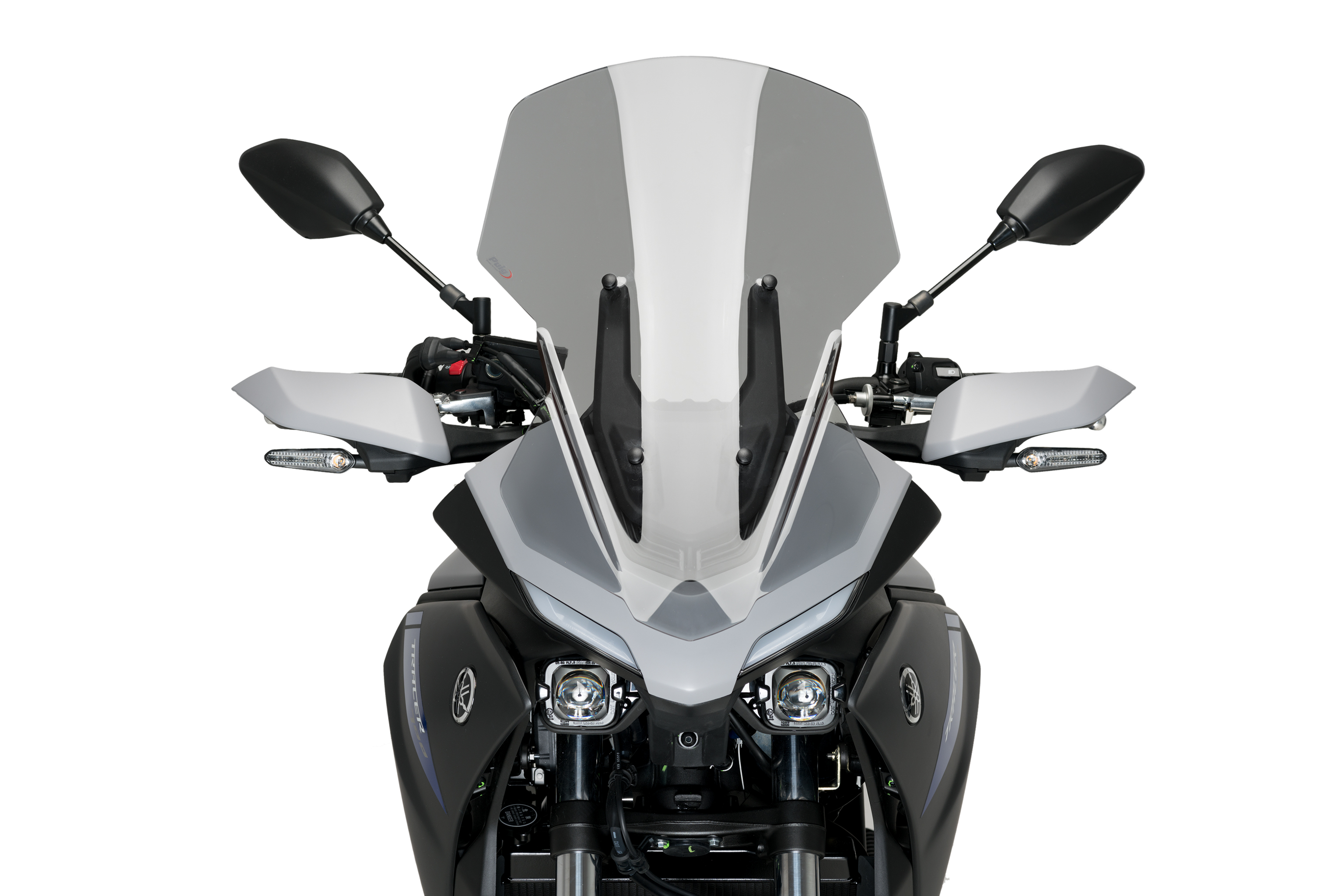 Improve the aerodynamic protection of your Yamaha Tracer 700 with the Touring windshield from Puig. Its design, thought to fit and integrate with the aggressive lines of the motorcycle, reduces the impact of the wind on the shoulder area thanks to its wider shape at the top. In this way, the air flows will not be so annoying, and you will avoid turbulences on the upper part of the torso.