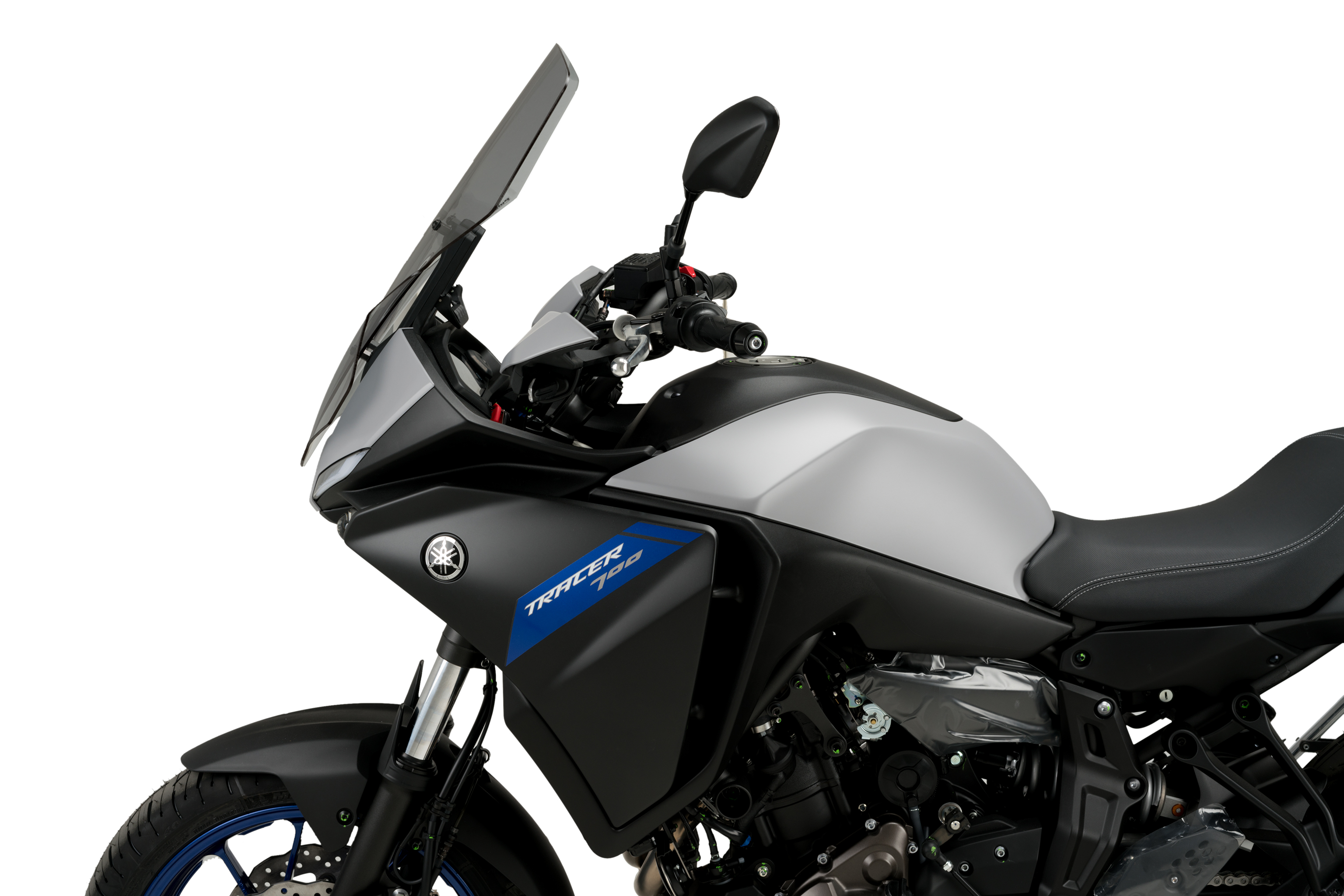 For the lower part, a design that goes beyond the fairing has been chosen, deflecting the air that is usually directed to the hands and arms better. All this with the main goal of reducing resistance to the maximum and thus improving comfort on the Tracer 700. In addition, its assembly does not affect the final aesthetics by being able to choose between transparent, light smoked and dark smoked colors.