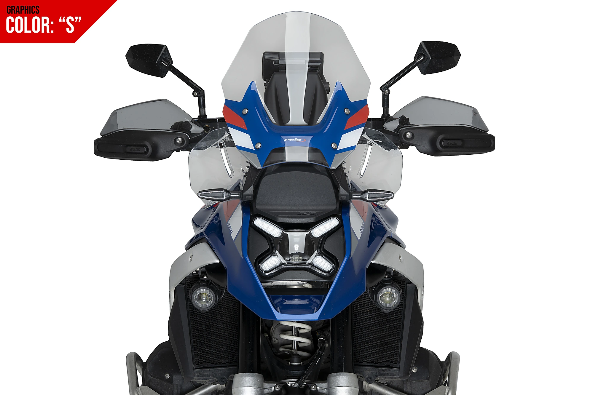 Touring screens, developed by Puig in Barcelona, are designed with the objective to aerodynamically protect the rider without affecting his/her field vision. In addition, these screens fit perfectly with the adventure style and aesthetics of the trail models thanks to their wide range of colors and different sizes.