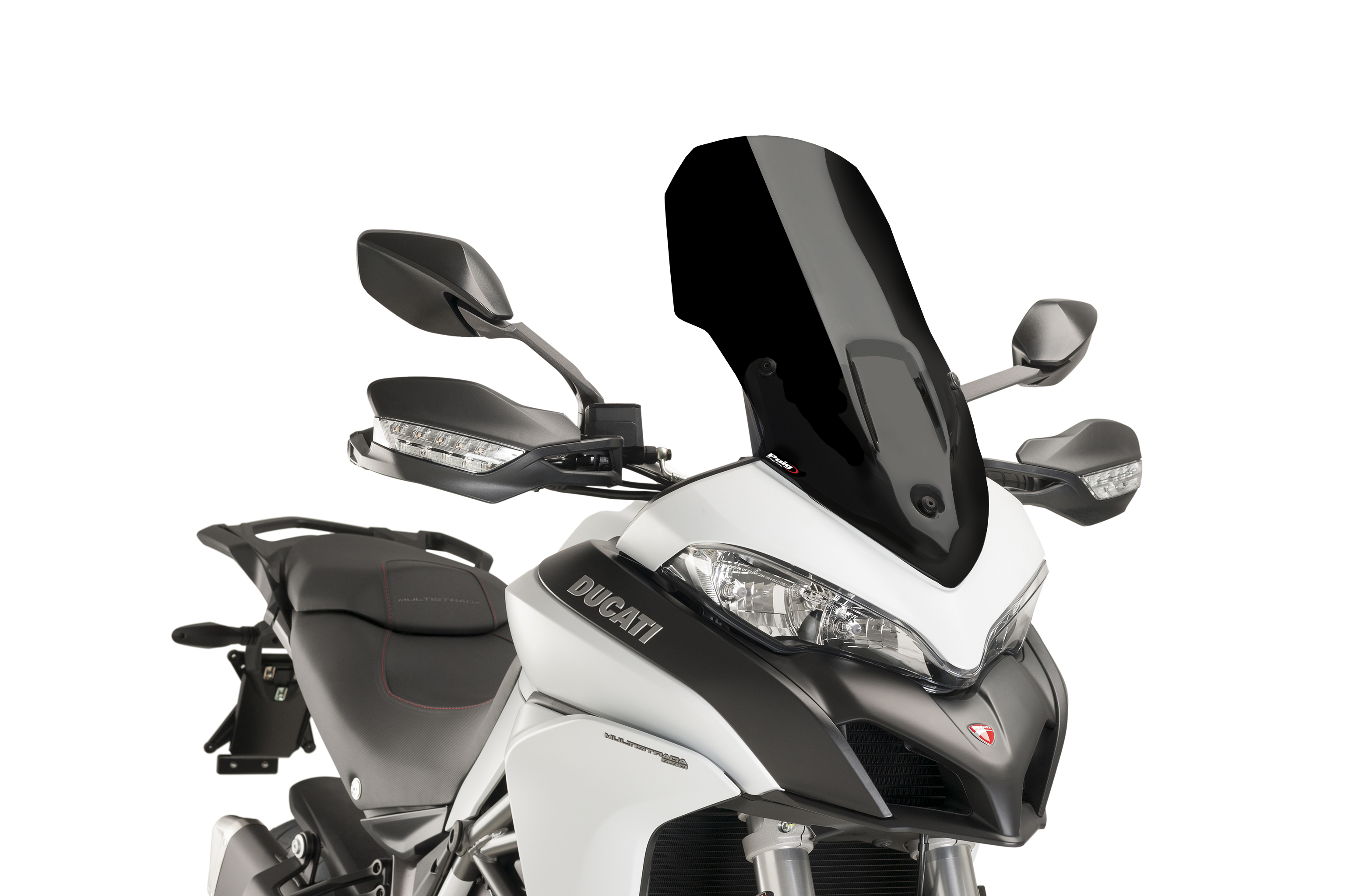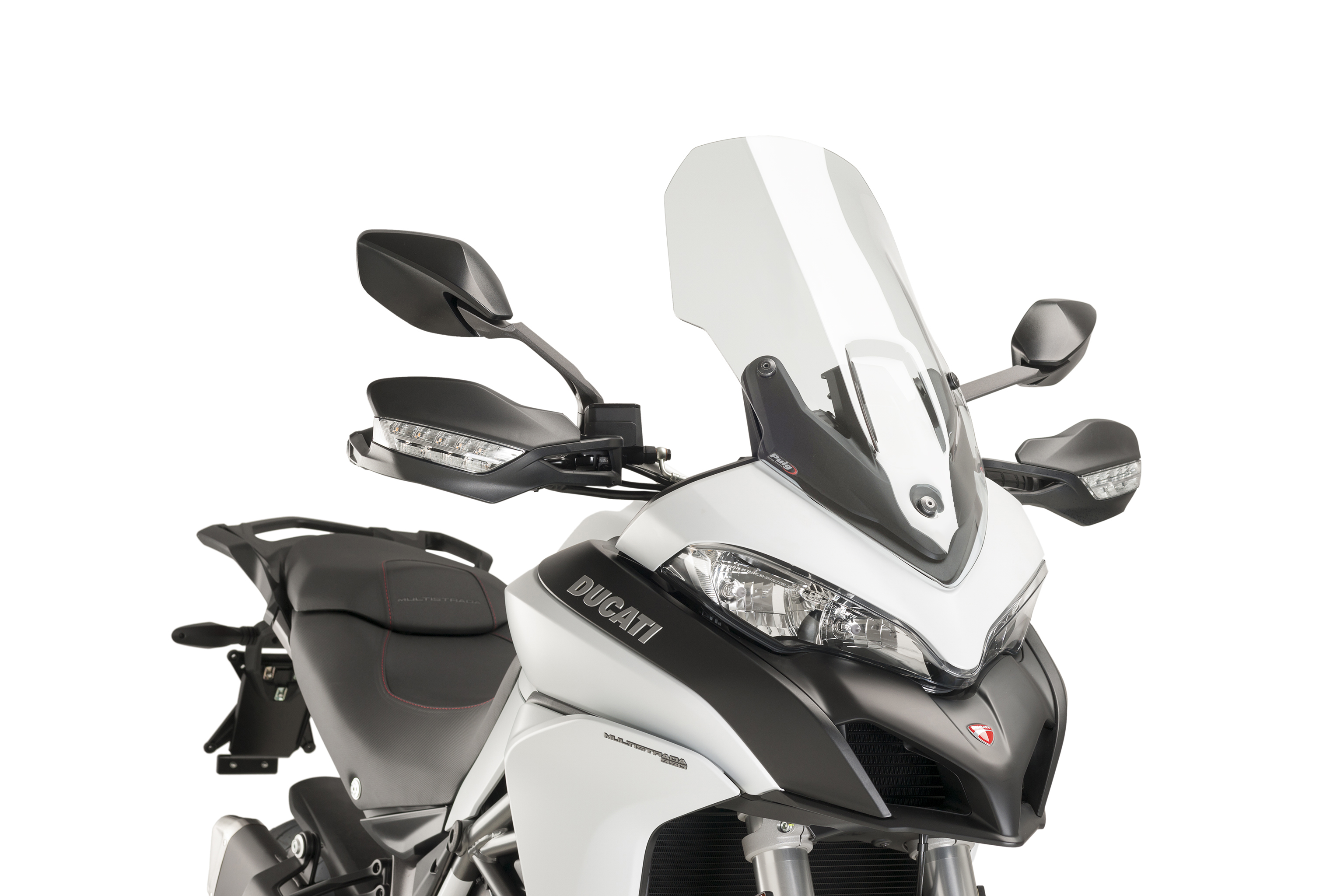 Touring screens, developed by Puig in Barcelona, are designed with the objective to aerodynamically protect the rider without affecting his/her field vision. In addition, these screens fit perfectly with the adventure style and aesthetics of the trail models thanks to their wide range of colors and different sizes.