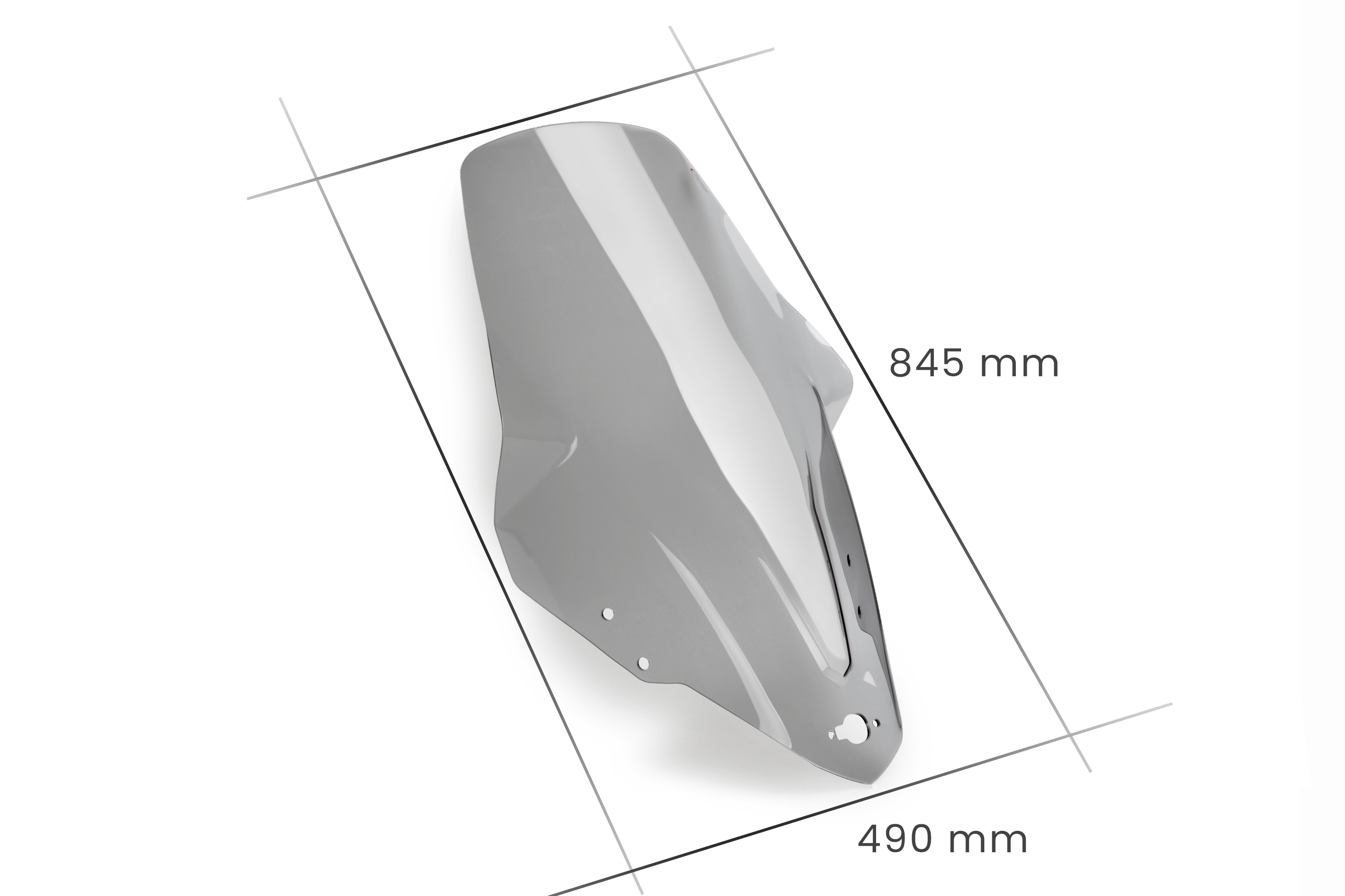 Total measurements: 845 mm high by 490 mm wide. It is 90mm taller than the stock screen on the Kymco X-Town CT 125cc and 300cc.