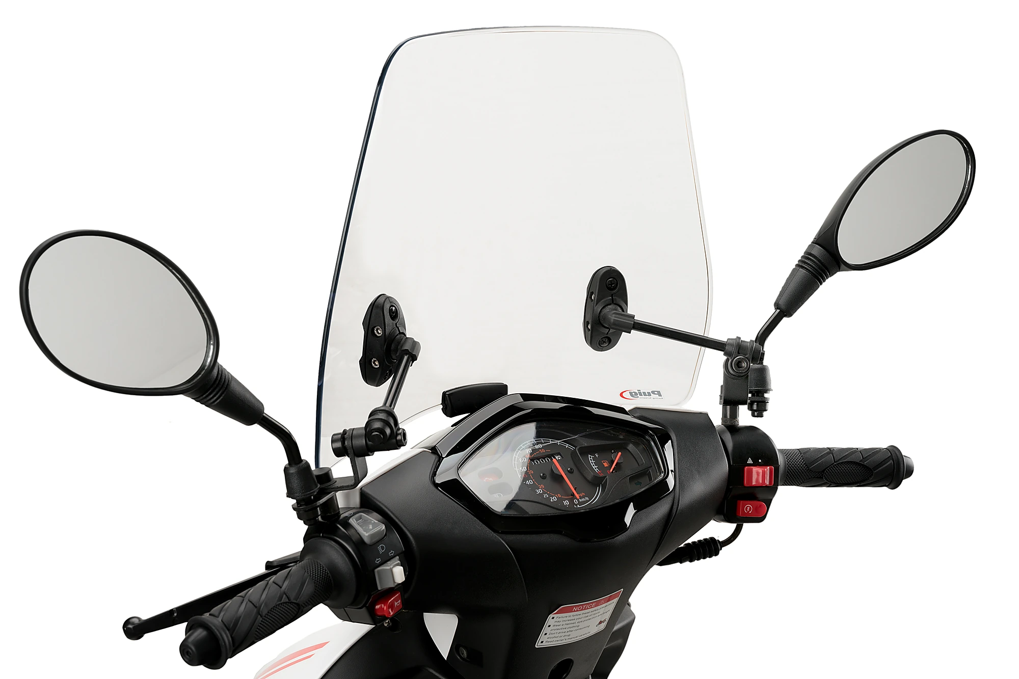 For the installation of the Trafic windshield, the manufacturer offers the piece with a special kit for finished specific models of Scooters. If required, Puig also offers an universal model for those bikes that need it together with a complete fixing kit.
