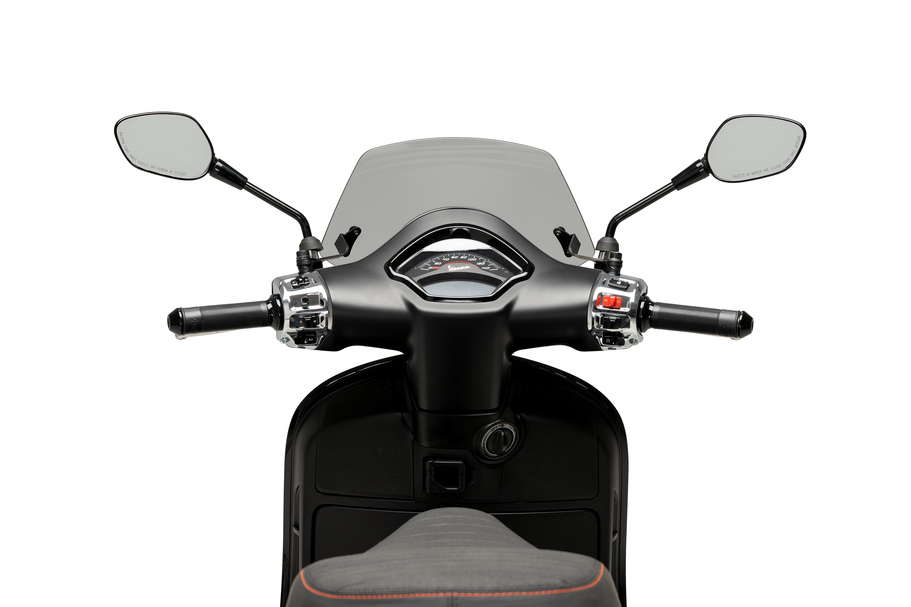 With measurements of: 220mm in height by 375mm in width, the Puig Sport dome protrudes 90mm from the tachometer of the Vespa GTS 125-300. For those who need greater aerodynamic protection, the Touring version is available.
