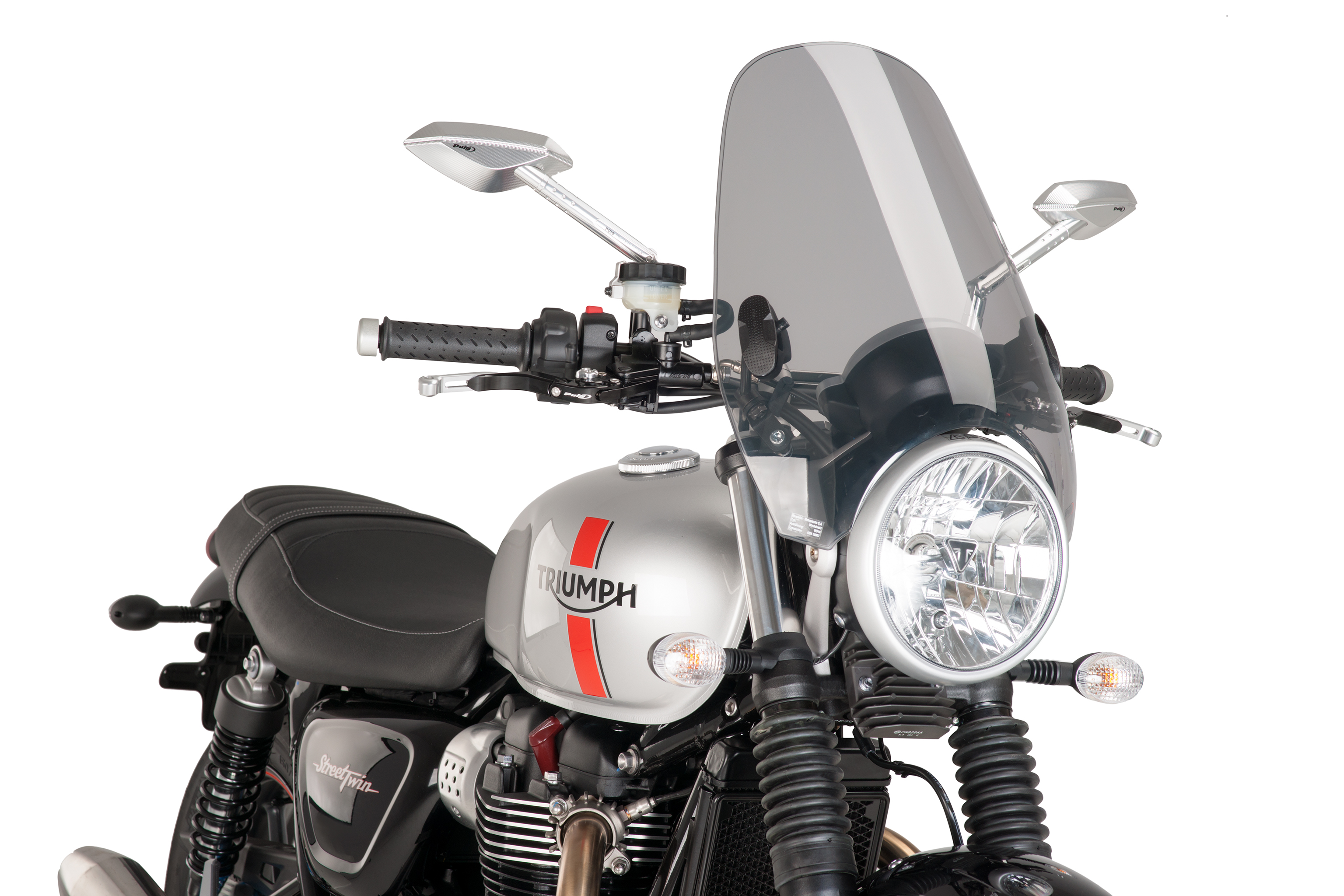 Are you looking for a tall fairing for your bike with a round headlight? The Custom II windshield will be your ideal choice. Manufactured in polycarbonate, material highly resistant to possible impacts and that guarantees a great aerodynamic capacity, it is designed under Puig’s look for Street Screens and we can find it in two finishes, smoked or transparent, so it will be a great complement to your motorcycle.