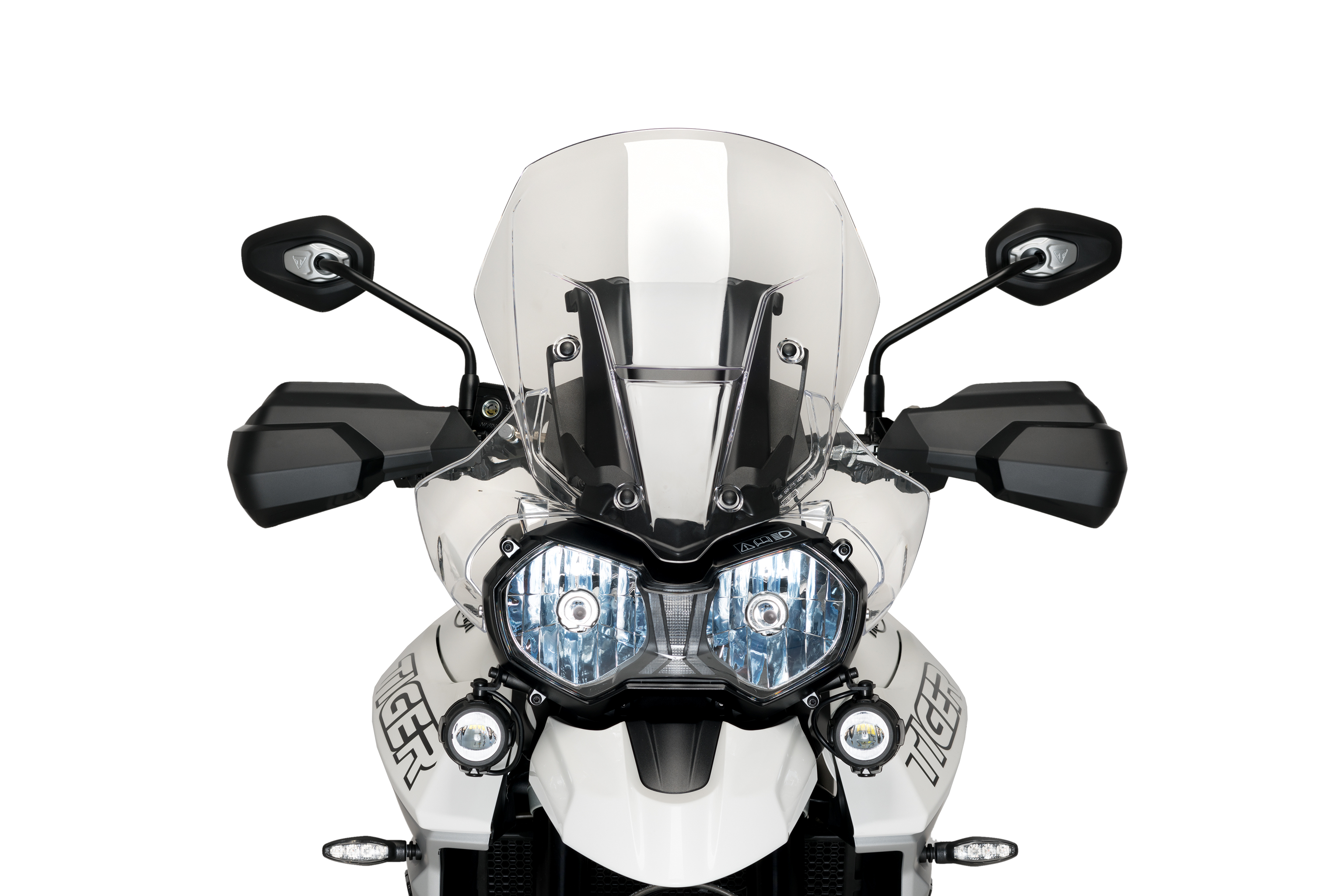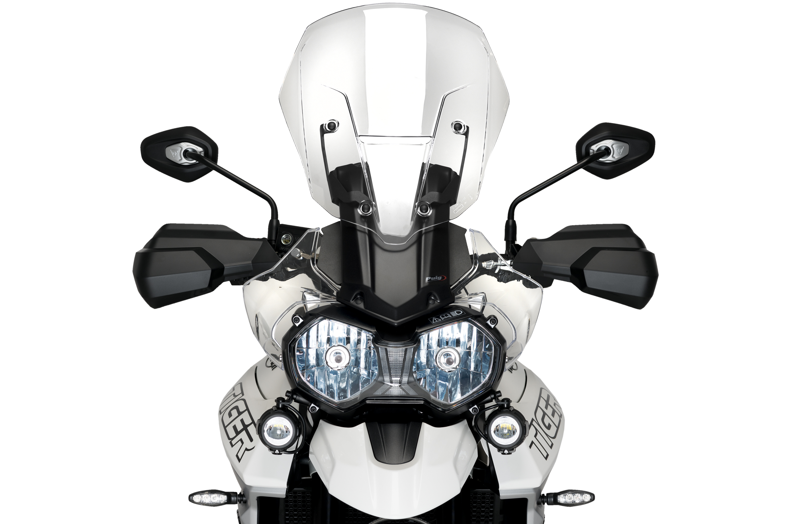 The E.R.S. (Electronic Regulation System) is a plug & play mechanism that offers you the possibility of modifying the screen height of your Triumph Tiger 800 by 150 mm for moments that require high protection such as on expressways or adverse weather conditions, or, on the other side, decrease this height below the original screen for city or off-road driving.