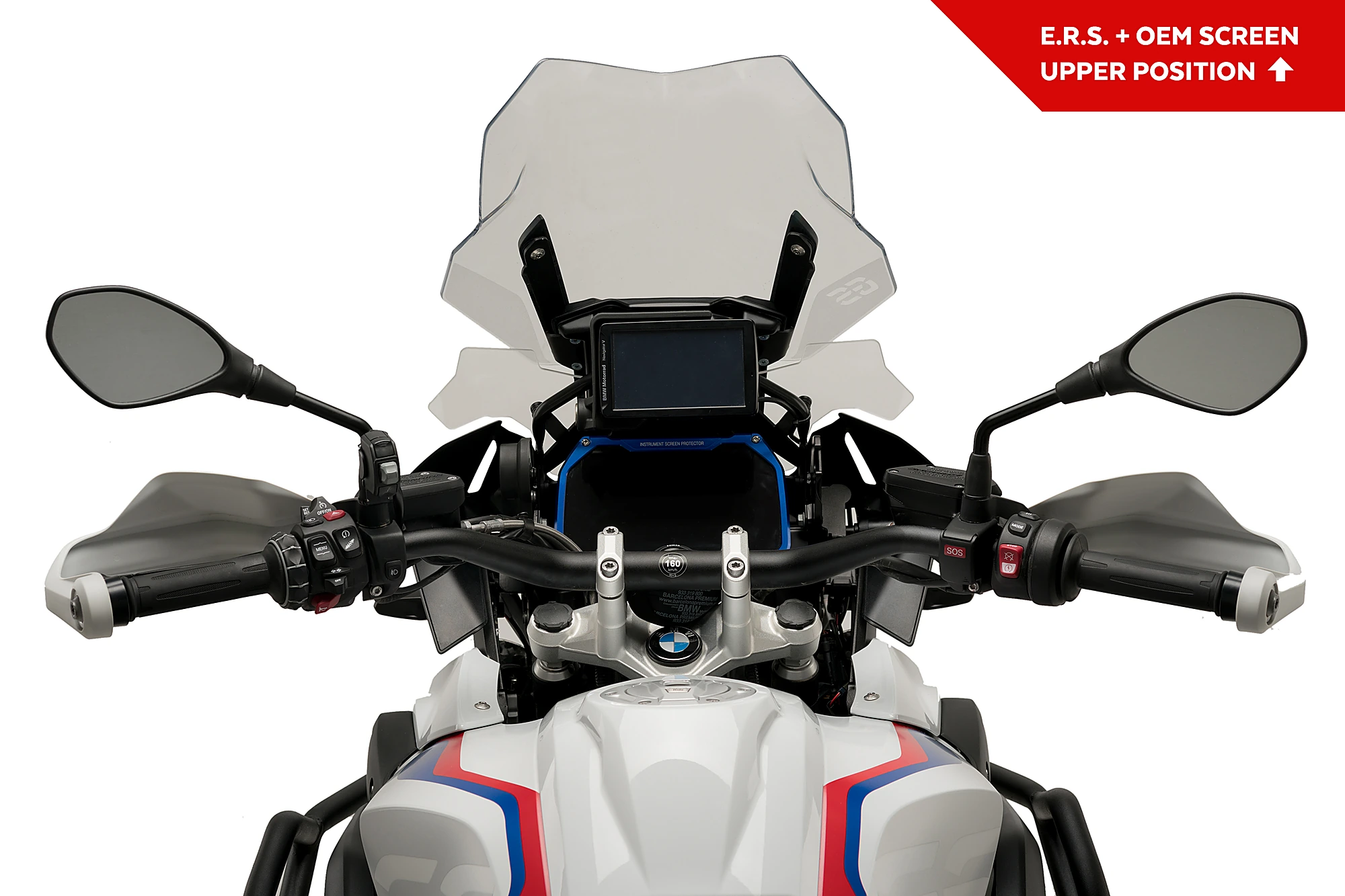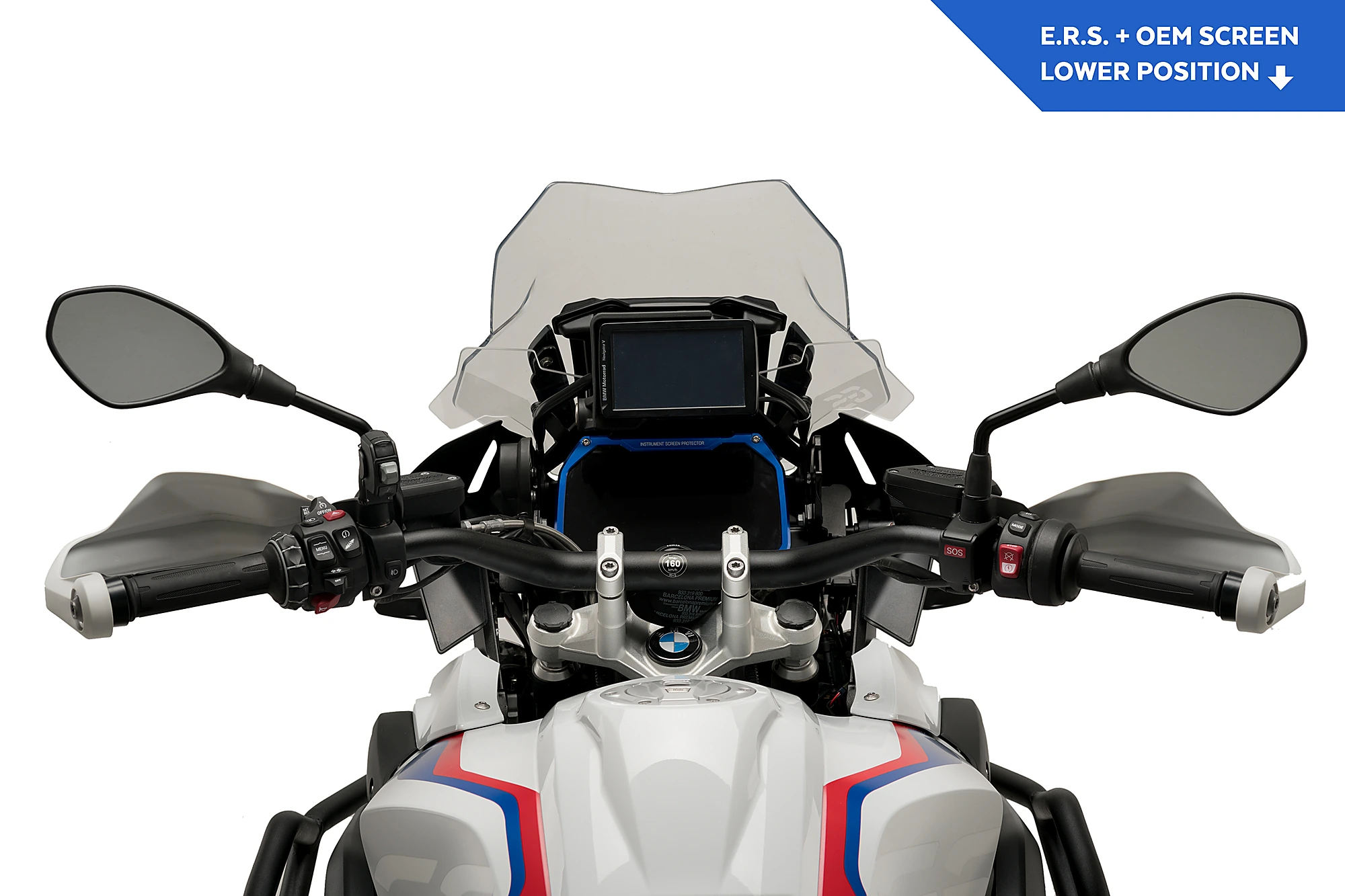 The E.R.S. (Electronic Regulation System) is a mechanism that gives you the possibility of modifying, at any time while driving, the height of the screen of your BMW thanks to a next-generation Joystick-type button that is located on the handlebar.