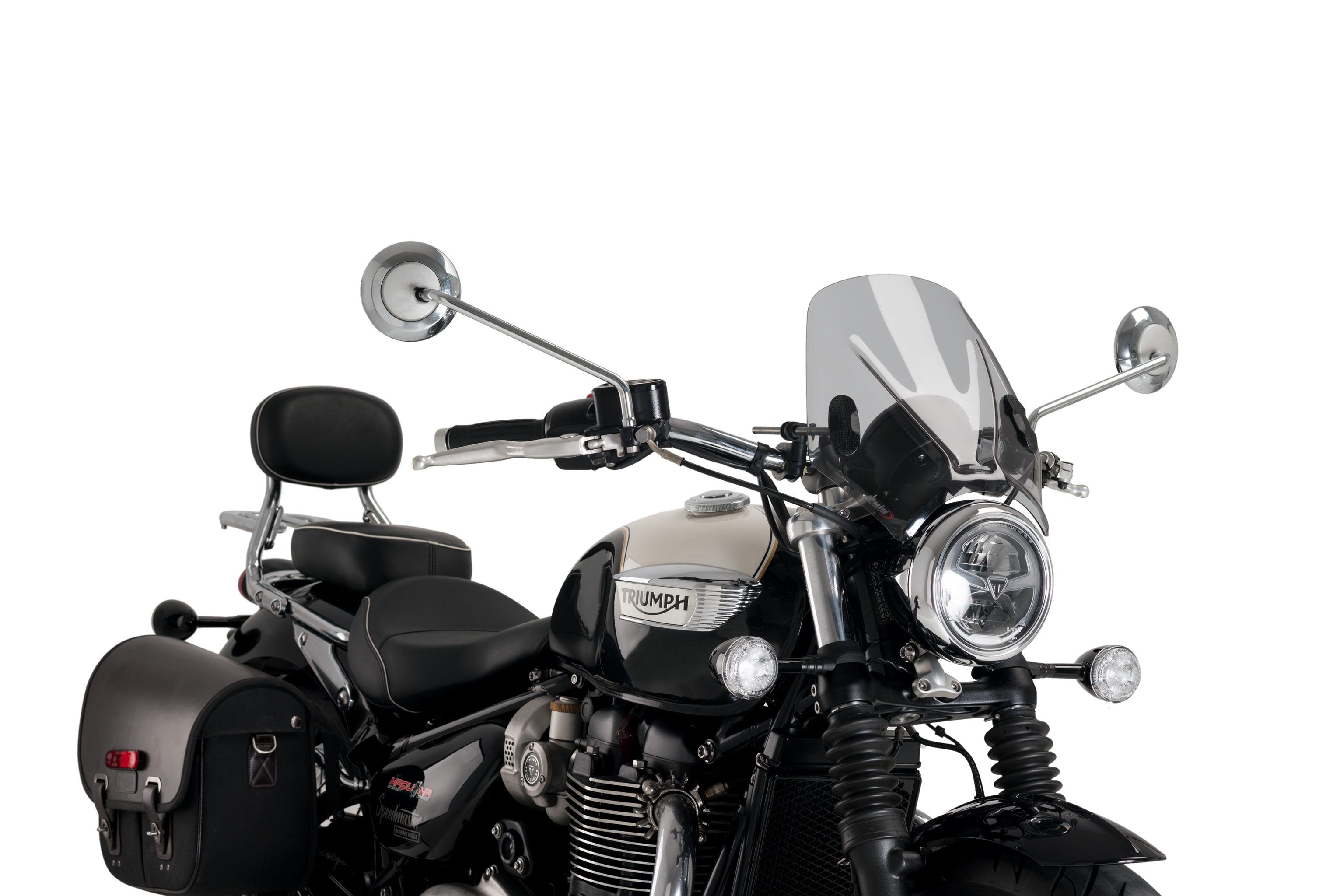 Improve the riding of your motorcycle and give it greater safety with the new Mito windshield from Puig. Thanks to its sober lines, its modernized classic character will give your vehicle more personality, being adaptable to motorcycles with round headlights.