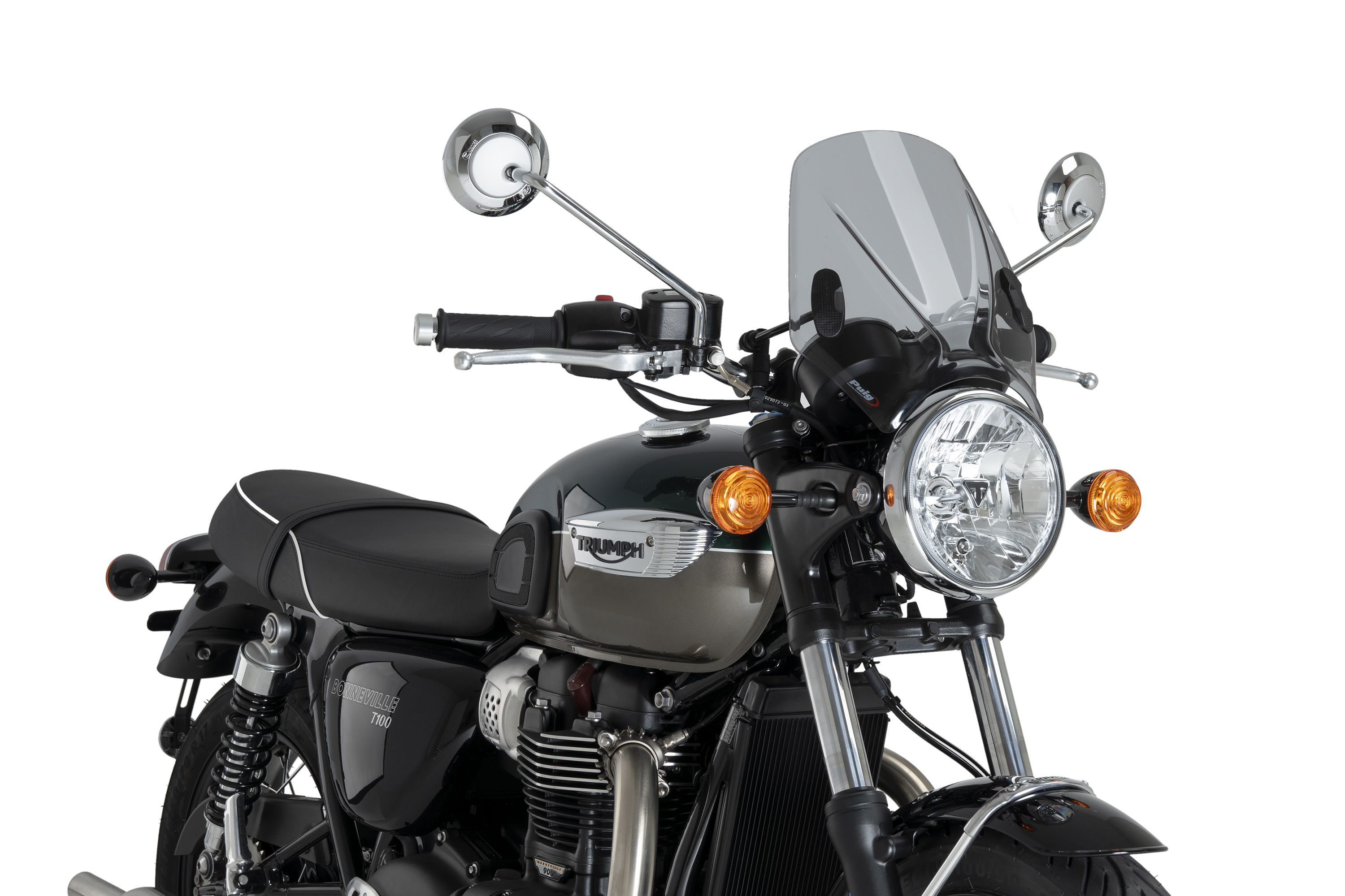 Improve the riding of your motorcycle and give it greater safety with the new Mito windshield from Puig. Thanks to its sober lines, its modernized classic character will give your vehicle more personality, being adaptable to motorcycles with round headlights.