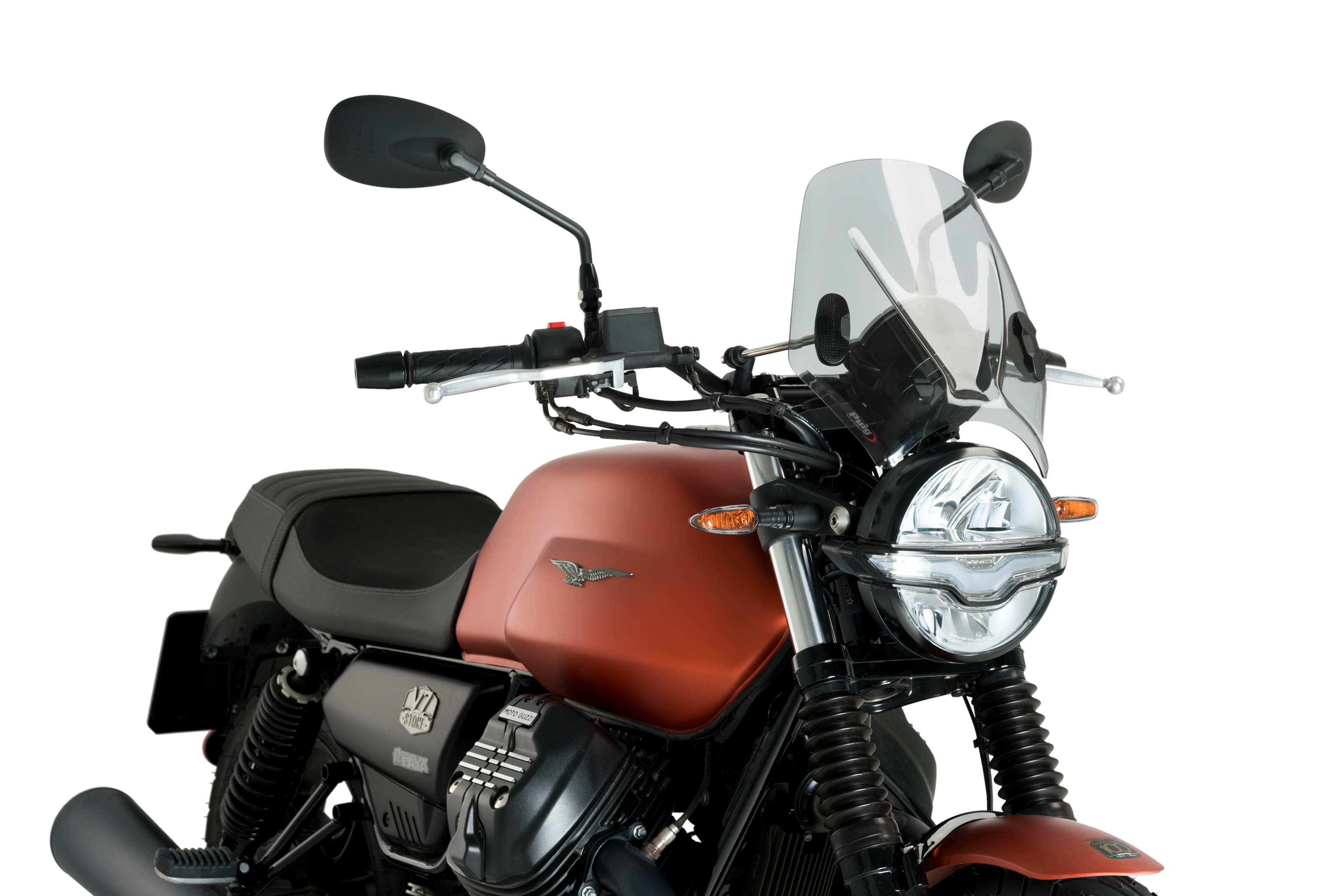 Improve the riding of your motorcycle and give it greater safety with the new Mito windshield from Puig. Thanks to its sober lines, its modernized classic character will give your vehicle more personality, being adaptable to motorcycles with round headlights.