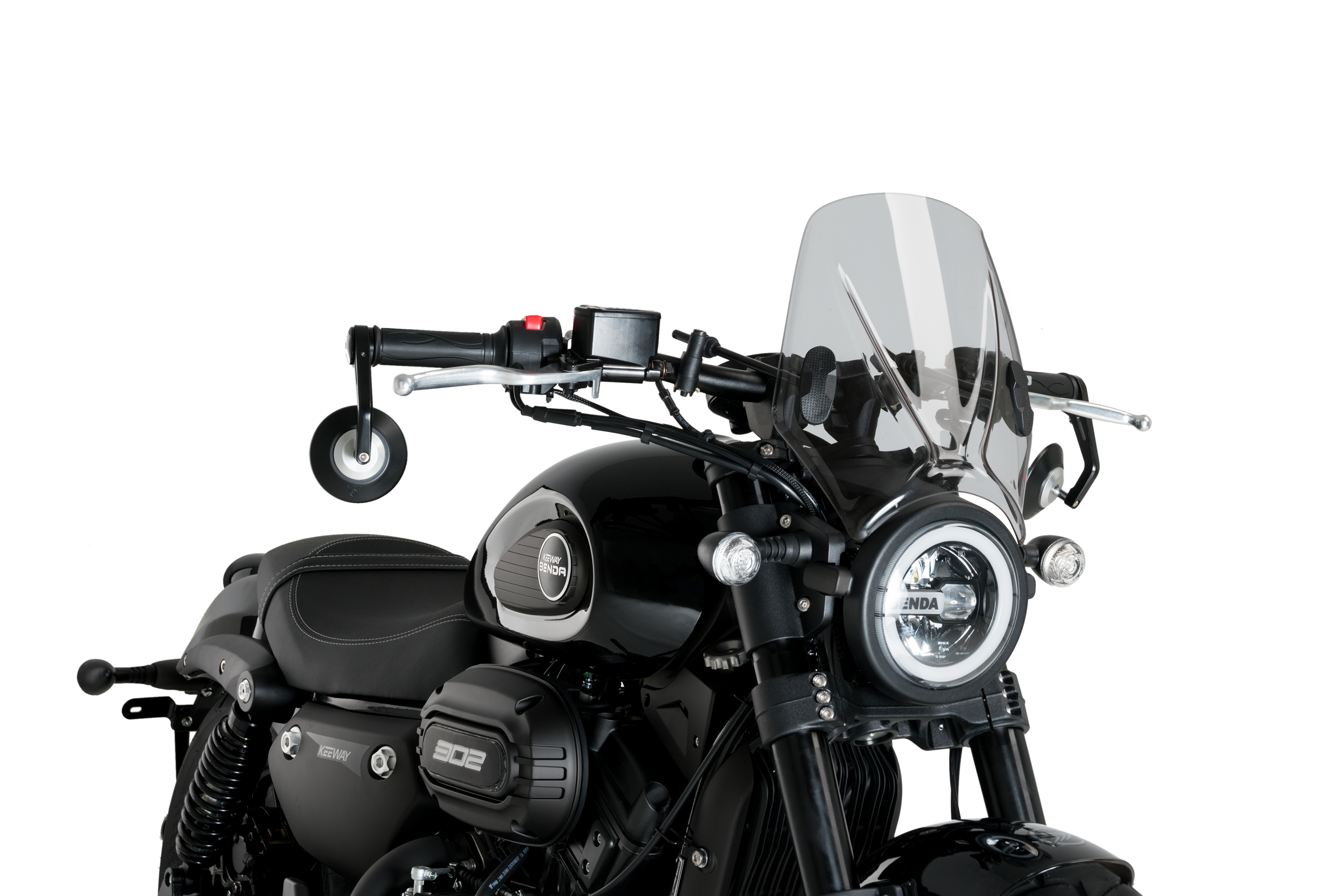 Improve the riding of your motorcycle and give it greater safety with the new Mito windshield from Puig. Thanks to its sober lines, its modernized classic character will give your vehicle more personality, being adaptable to motorcycles with round headlights.