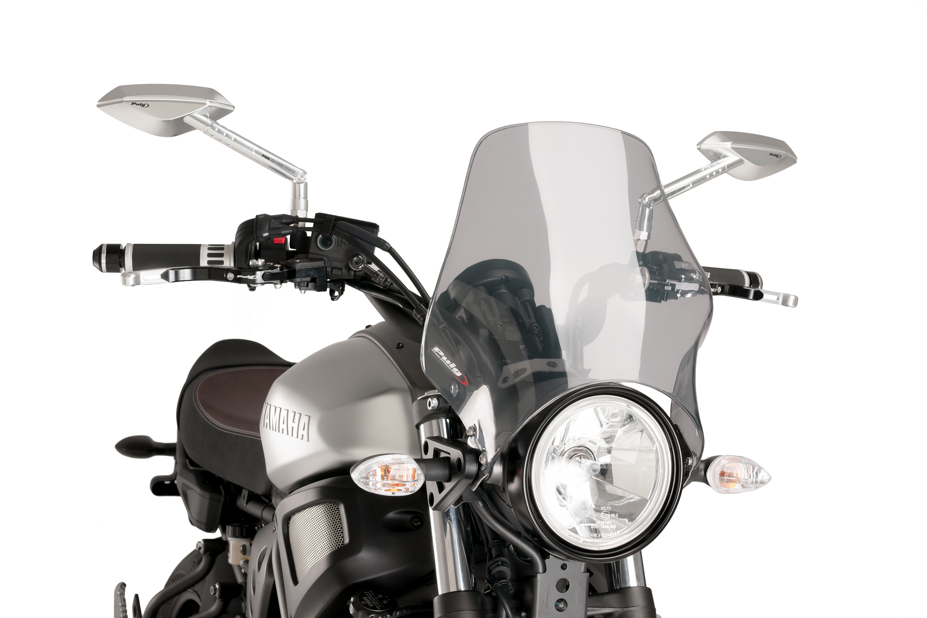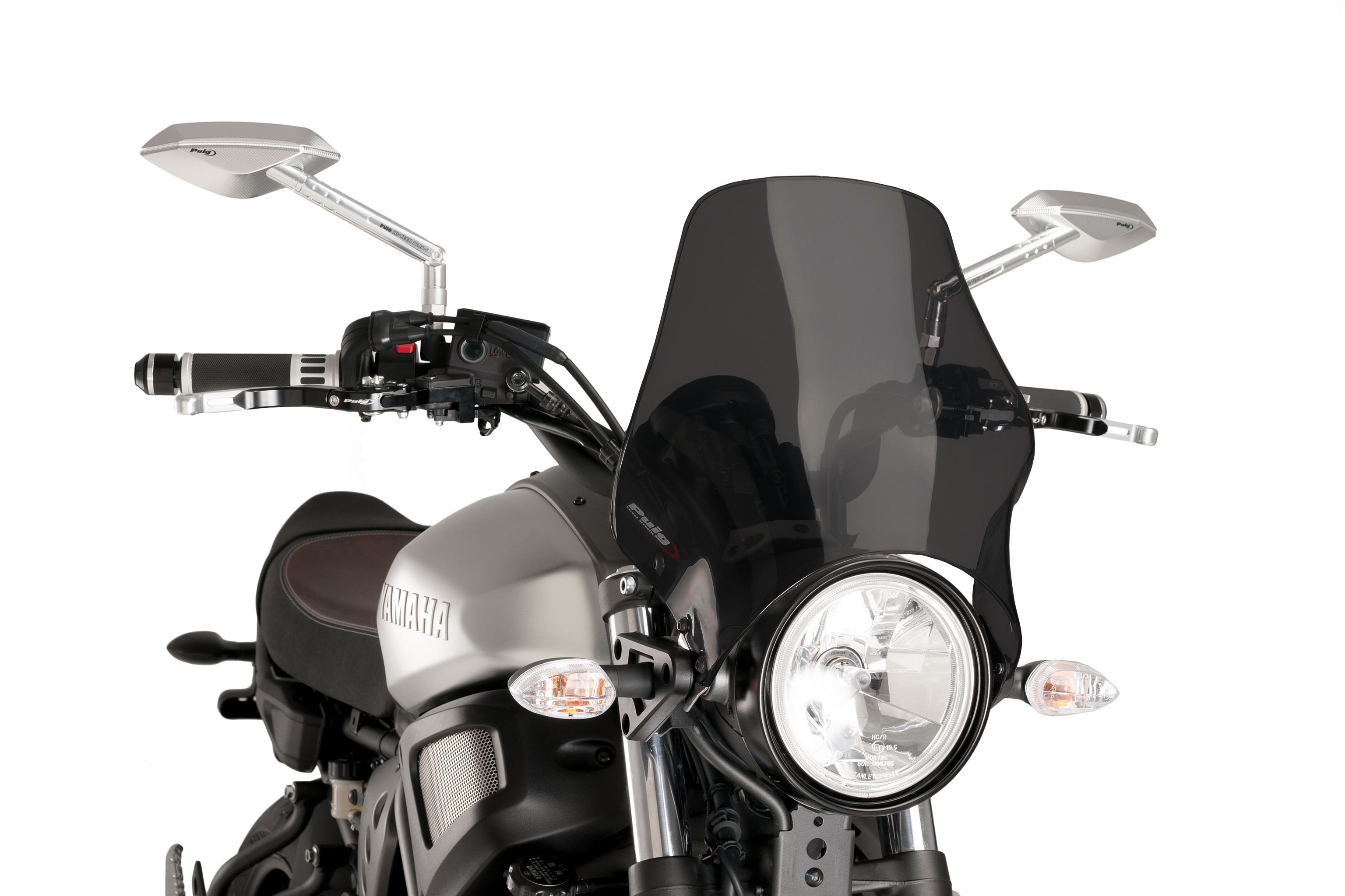 If your motorcycle is Naked style and you are looking for a short beacon for a round headlight, the Naked fairing from the Puig Street Screens line will be your best ally.