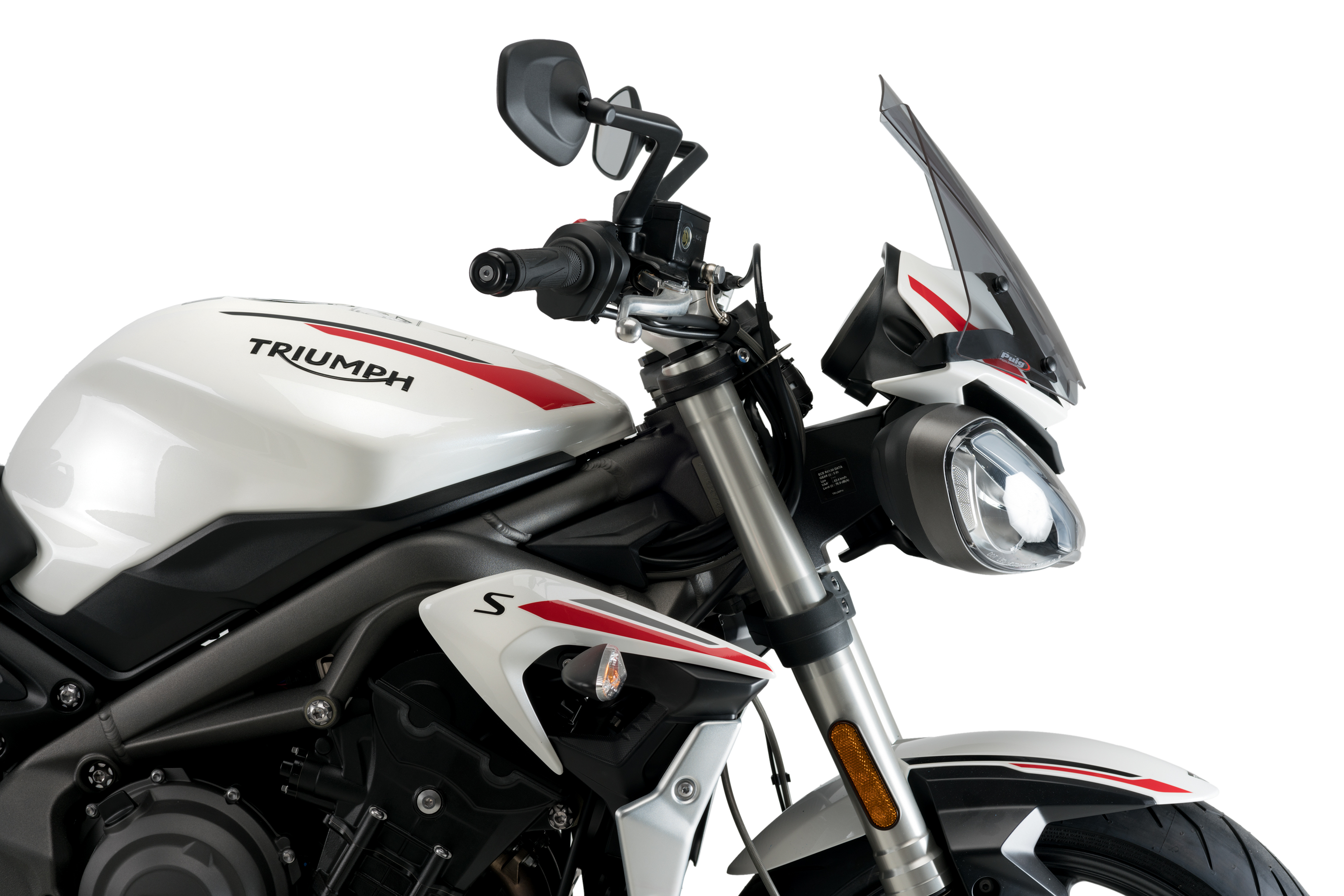 This Sport windshield is perfect if you are looking to maintain the impeccable design of your Triumph Street Triple S / R / RS while improving its air resistance. Its aesthetic merges with the minimalist and simple lines of this elegant naked, making it your best travel partner. Thanks to its shapes, it reduces the direct impact of the wind on the torso and arms, offering a more comfortable and less exhausting ride. The ideal balance between functionality and sport design.