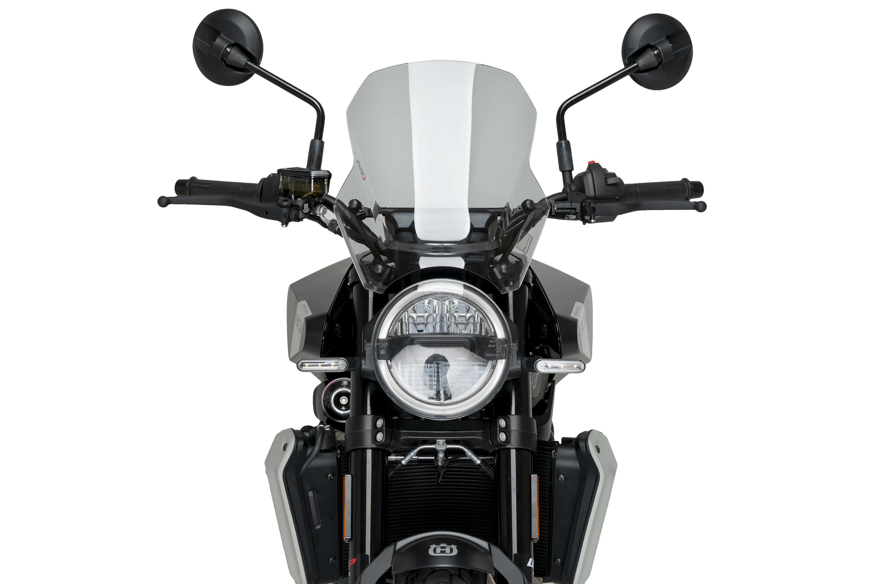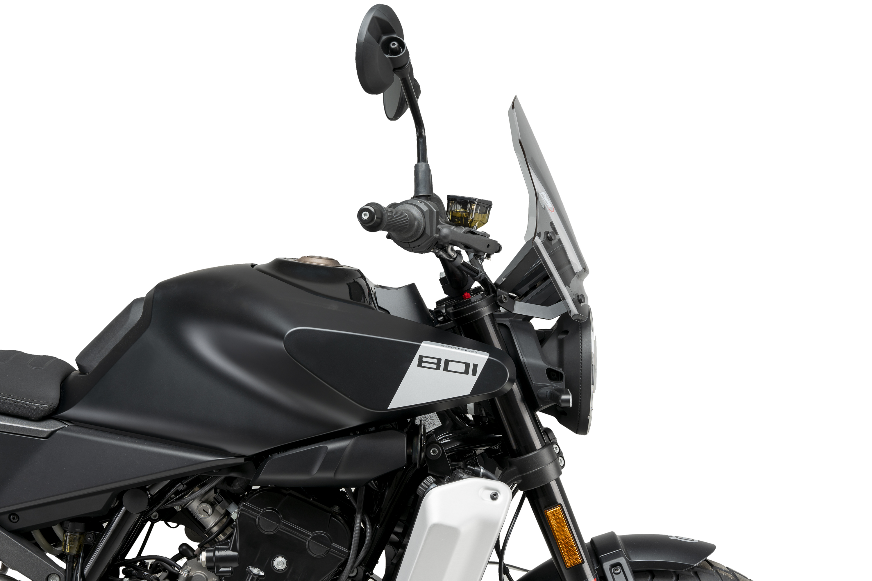 Designed for those seeking increased aerodynamic protection without sacrificing style, the Puig Sport screen combines sharp lines with a functional and sporty design. Its flat central surface ensures optimal visibility, while the side contours deflect the airflow that would otherwise hit the rider’s hands, significantly improving riding comfort. The lower part aligns with the headlight and connects to the tachometer, creating visual cohesion and reinforcing the bike’s personality.