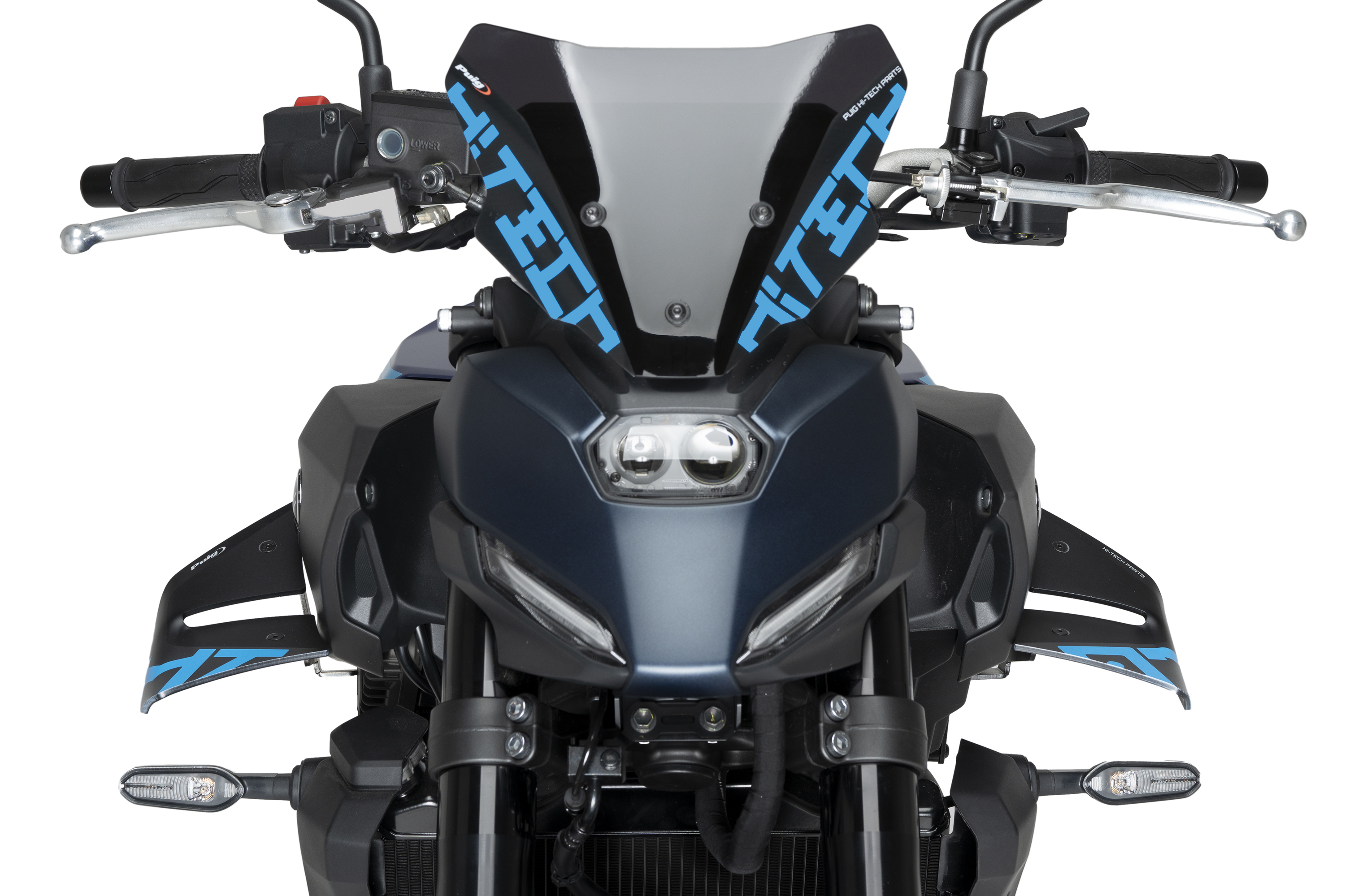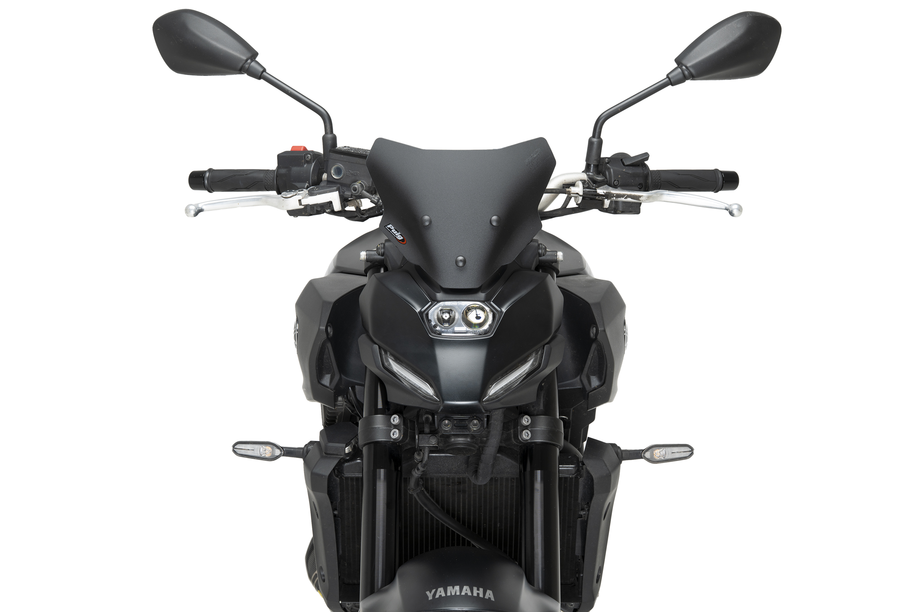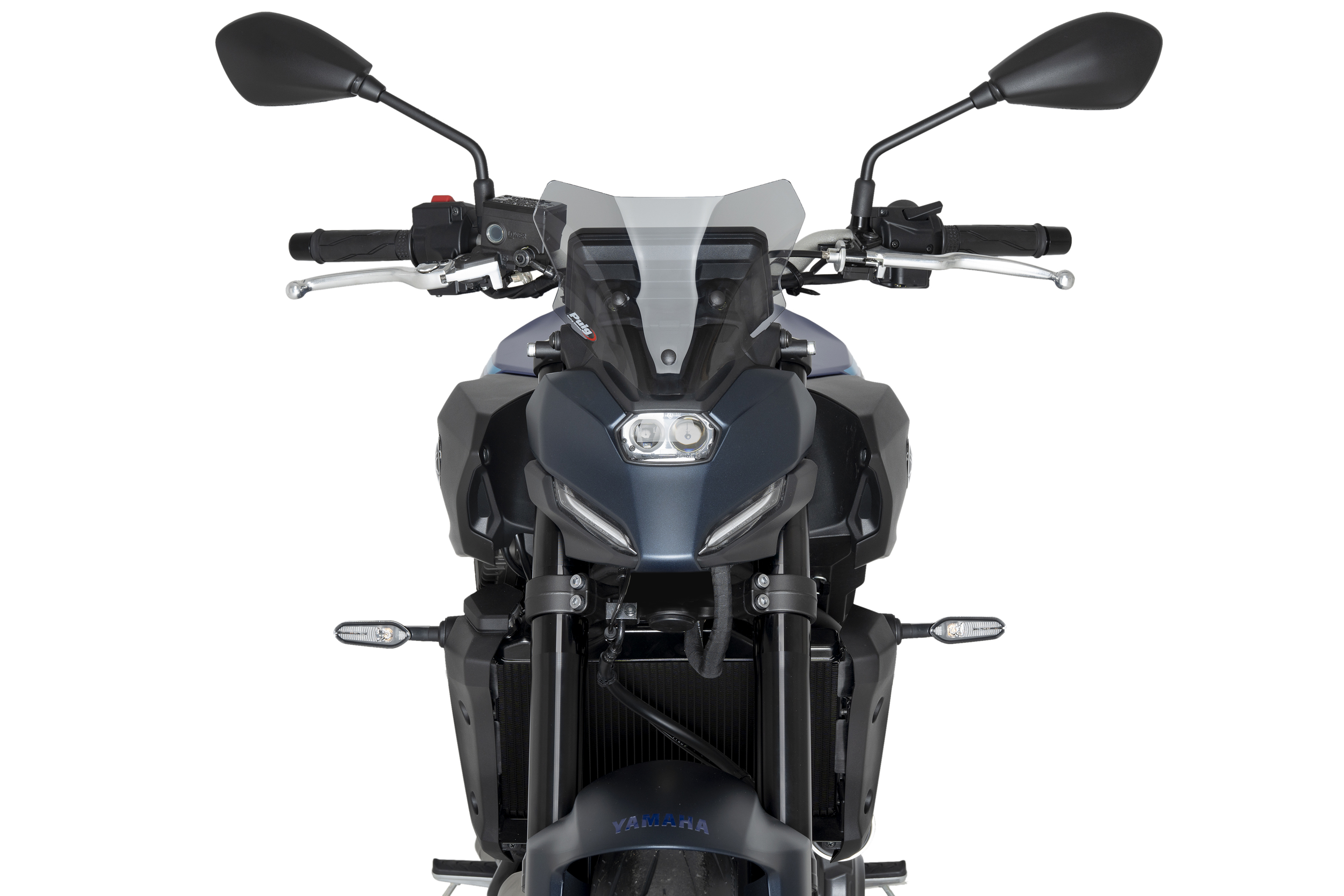 Enhance the aggressive and sporty aesthetics of your YAMAHA MT-07, the best-selling middleweight naked bike, with Puig's NG Sport windshield. Inspired by the aerodynamic shapes of fighter jets, this windshield offers perfect integration with the new front design of the MT-07, resulting in a sharper, more dynamic, and modern look.
