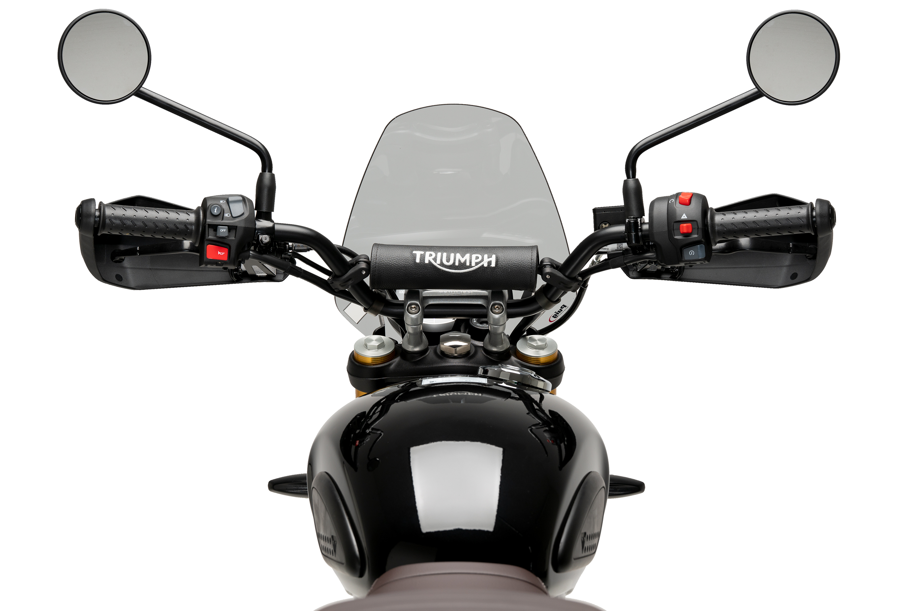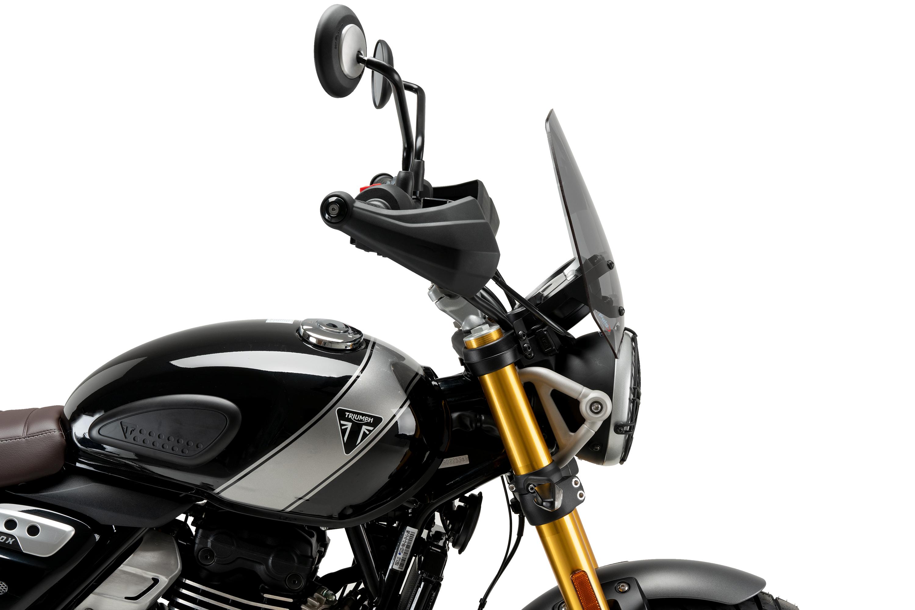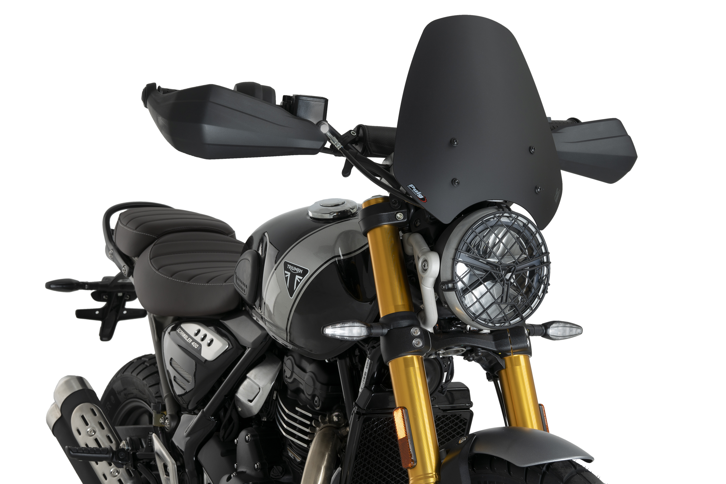 Complementing the lines of the TRIUMPH Scrambler 400X fuel tank, the rounded shape design of the windshield not only preserves the motorcycle's aesthetics but also maintains its excellent aerodynamic capacity.