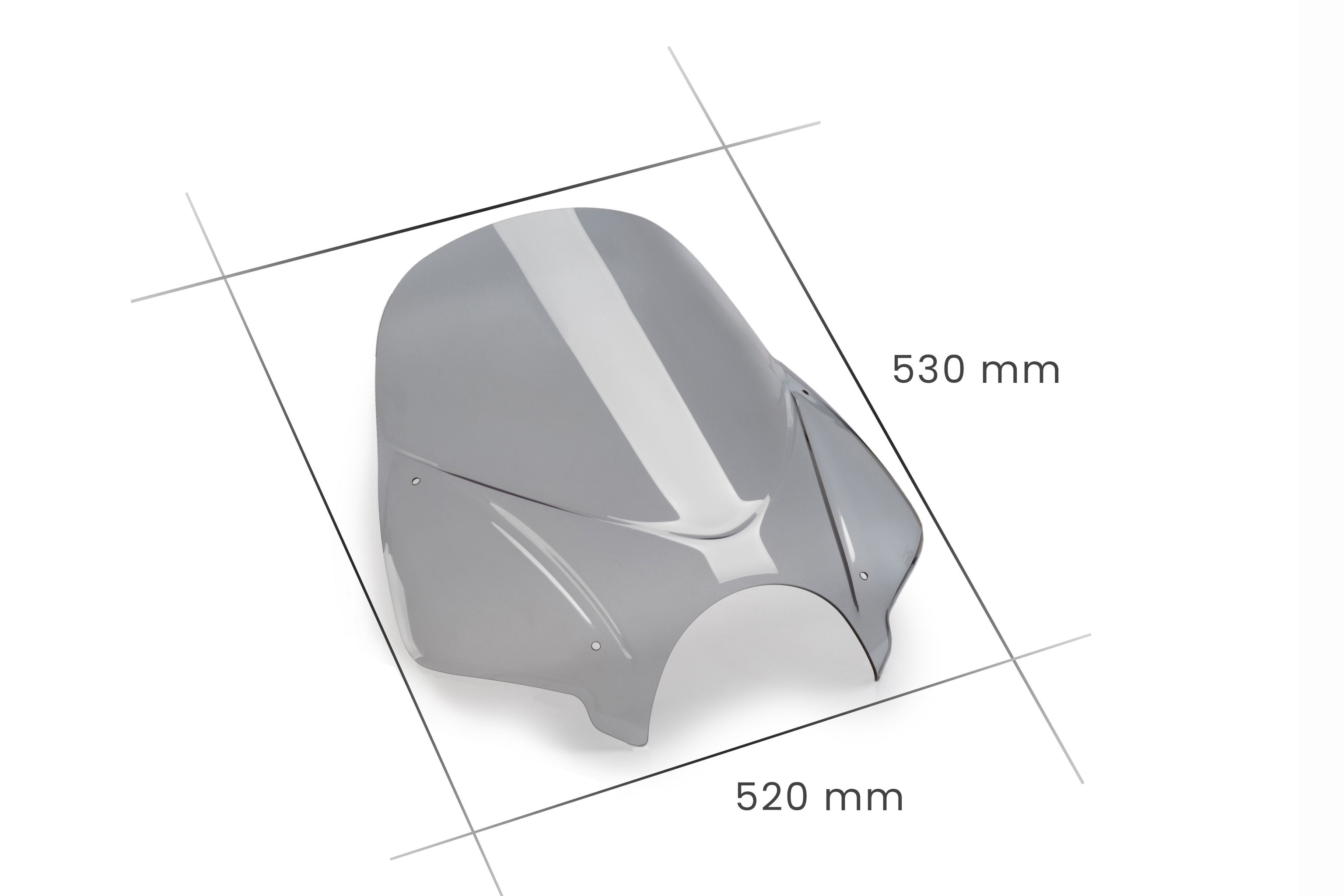 Designed in Barcelona, under the most advanced technology, the NG Touring windshield for your BMW is made of high-impact acrylic material 3mm thick and measures 520mm wide by 630mm high. In addition, its rounded contours comply with the strictest safety regulations and have a diameter of Ø4mm.